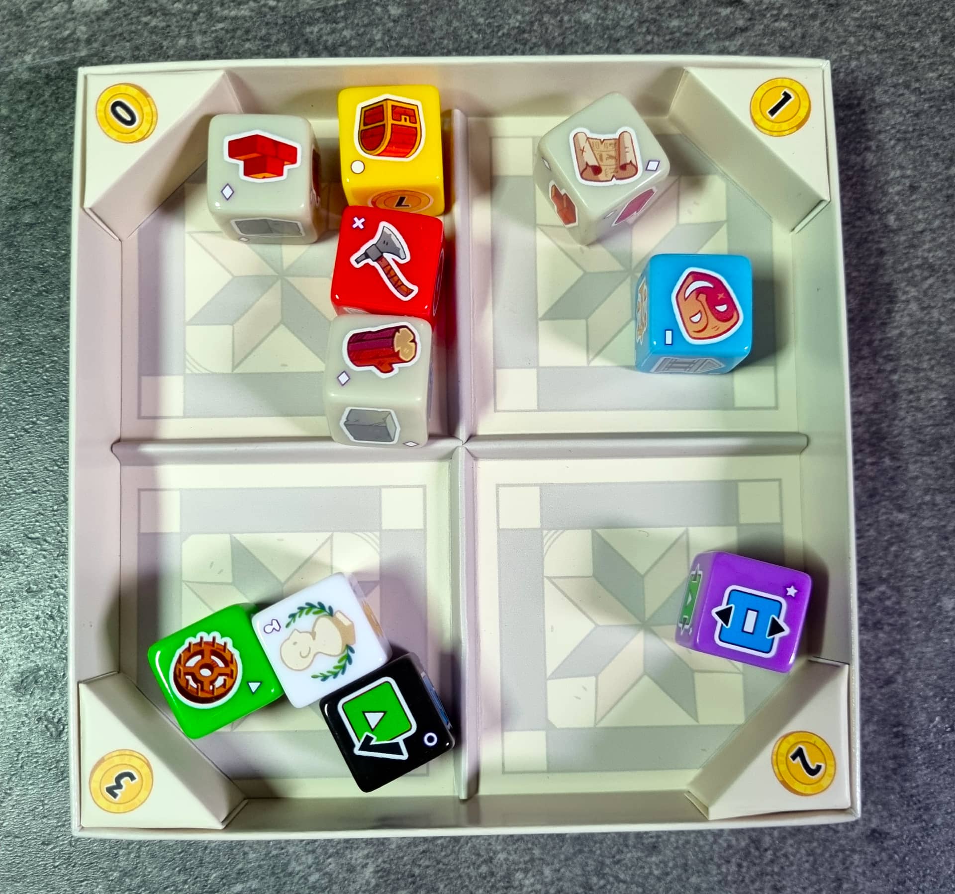 7 divů světa v kostce nepatří mezi náročné zakreslovačky, kde promyšlenou strategií spustíte sérii navazujících akcí. Je spíše oddechovou hrou, u které si zvládnete i popovídat o životě, vesmíru a tak vůbec. Tahy provádíte všichni současně a tak nehrozí dlouhé čekání, než se dostanete na řadu. Užijete si ji s dětmi i v partě dospělých. Zajímavé je, že bez ohledu na věk všichni milují rachtání kostkami v krabičce fóra. Poctivě jsme se v této činnosti střídali. Případně zapojíte i nejmenší členy rodiny a přidělíte jim funkci automatické míchačky. Díky možnosti hrát už od dvou hráčů je 7 divů světa v kostce výborným titulem pro unavené rodiče, pokud raději sáhnou po kostkách a volí lehčí hru, než je právě pro dva hráče určený titul 7 divů světa: Duel nebo jeho převedení do světa J. R. R. Tolkiena, Pán prstenů: Duel o Středozem. Skvělý je také jako filler na deskoherní den mezi hutnější hry nebo na úvod herního večera.