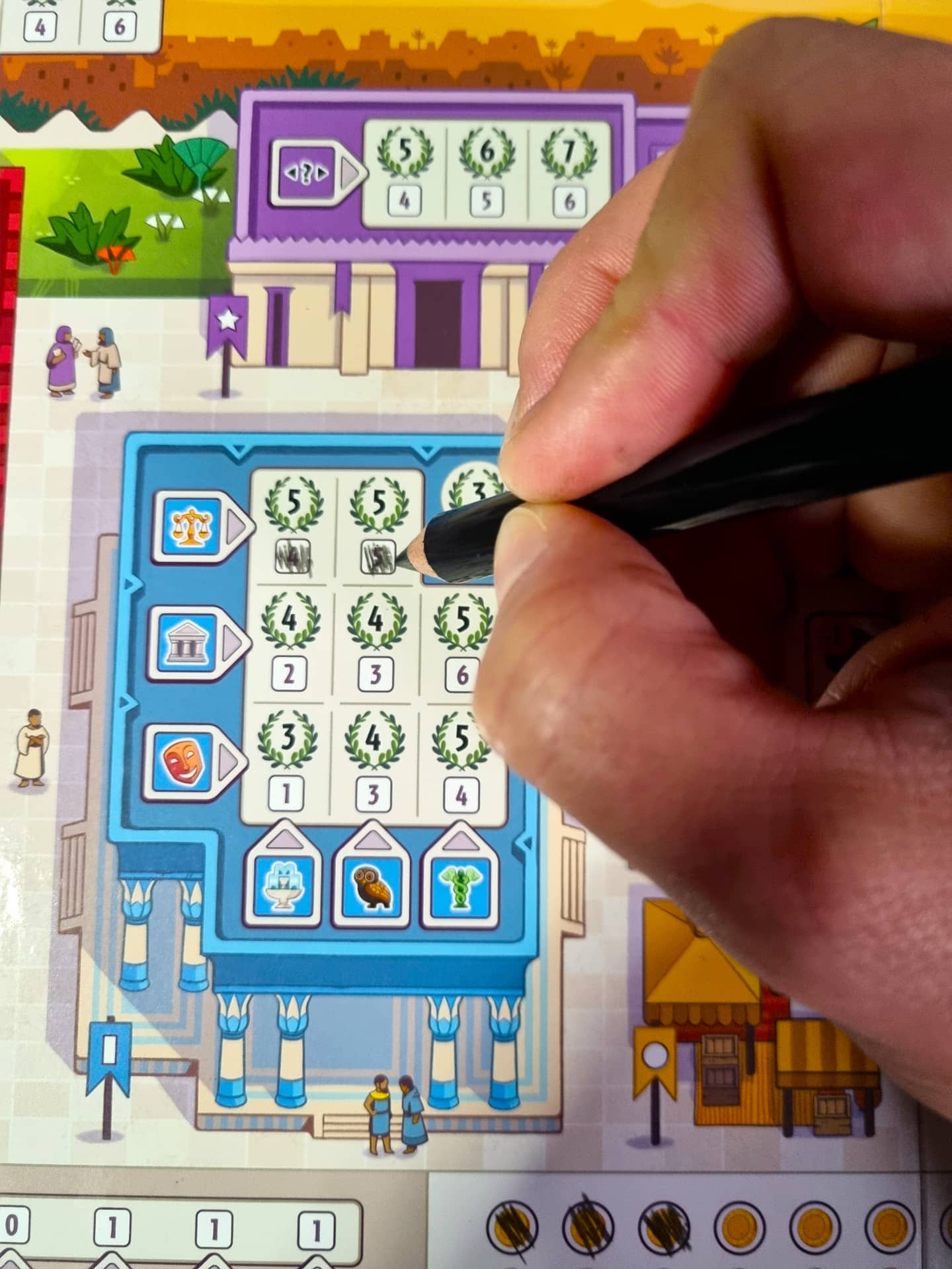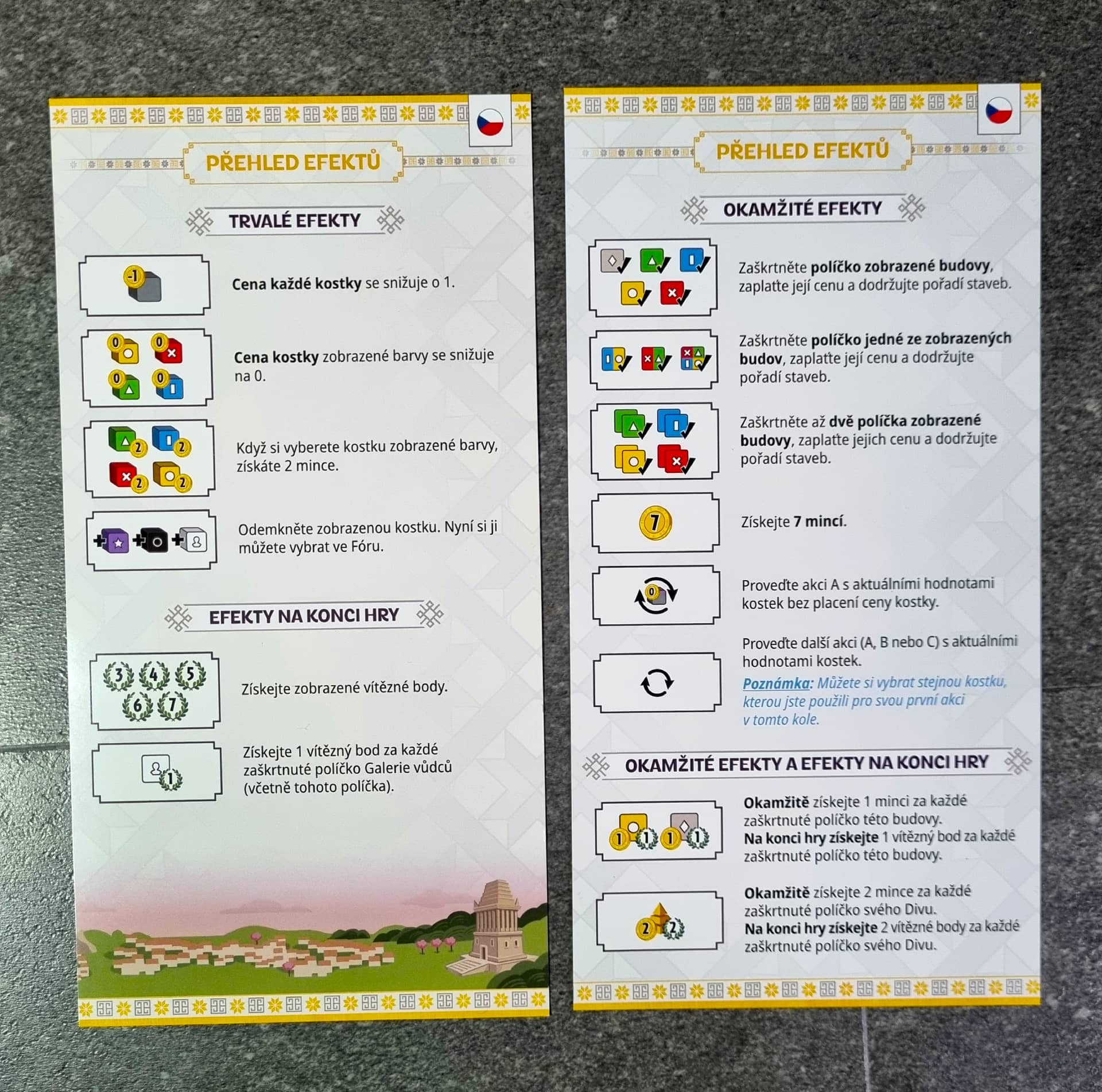 7 divů světa v kostce je další hrou z této úspěšné série. Téma zůstává, karty nahradily kostky a smazatelná zakreslovací hráčská deska. Jde o zakreslovačku, tedy hru s mechanikou roll and write. A tady se hned v úvodu přiznám, že zakreslovačky miluju. Mám jich doma velkou spoustu, od těch jednoduchých, jako Takenokolor, po ty náročné, které vám zavaří mozkové závity. Očekávání bylo veliké, protože kombinace kostek, mechanismu roll and write a rodiny 7 divů světa by mělo být přesně tím, co mě nadchne.