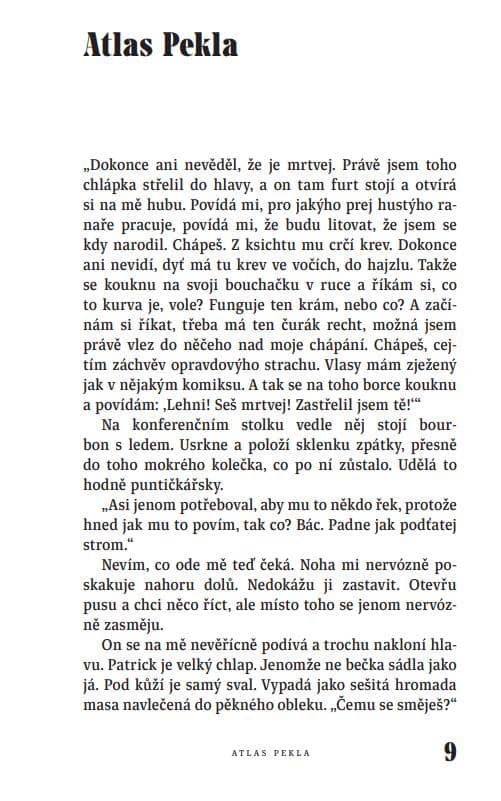 Atlas Pekla nepřináší klasický horor, který vás přinutí se prostě bát. Je to sbírka povídek, které se podivnými cestami dostávají hluboko do nitra a tam nejspíš zakoření. Nevrcholí epickými konci, nekoketují s duchařinou. Přinášejí takové Peklo, jaké si představíte, když někdo začne mluvit o okultismu a satanismu. Dobarvují ho směsicí brutálních, grafických scén, hlubokou psychologií postav a plynulým vyprávěním, které jen někdy pokřivuje vlastní pravidla. Je to hororová kniha pro čtenáře fajnšmekry a fanouškům temných počítačových her vrátí pocit, který měli z první návštěvy světa temných duší.