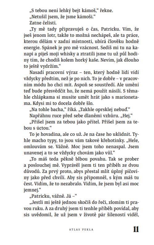 Nedá se tedy říct, že by Atlas Pekla byl ve svém žánru lehkým či snad typickým čtivem. Působí hlouběji a citlivěji, proráží si cestu k lidské temnotě a zvrácenosti a nechává z ní vyrůstat pekelná monstra. Je to sbírka pro fajnšmekry, kteří se nebojí nějaké té temné až depresivní epizody po dočtení.