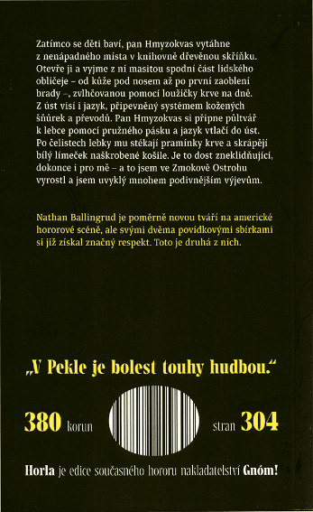 Podtrženo a sečteno, z hlediska vyprávění tu není mnoho novot, ale to neznamená, že by se kniha nečetla dobře. Místy snad možná až moc dobře, když vezmeme v úvahu, jak grafická a explicitní je ve vykreslení brutality a nechutností všeho druhu. Člověk až chvílemi přemýšlí, jak na tohle Nathan Ballingrud přišel… Že by ten svět nevytvořil, ale popsal? Doufám, že se pro klid vlastní duše pravdu nikdy nedozvím!