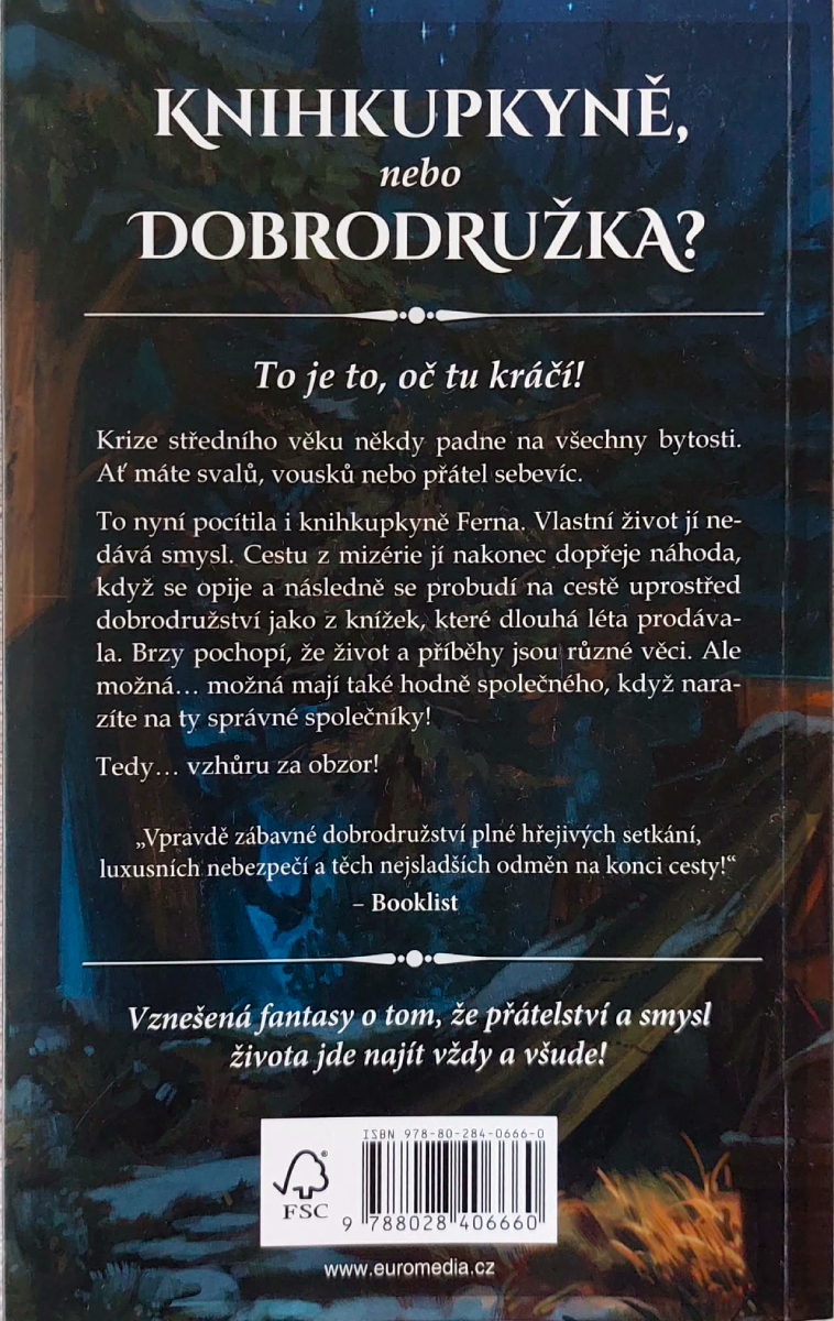 Hlavní hrdinkou je tentokrát krysačka Ferna, kterou už zkrátka přestalo bavit nudné a místy dost krušné vedení knihkupectví v zapadlém Šeráku. Rozhodne se proto pro radikální životní řez: přestěhuje se do města Thune, aby si zřídila nový krámek hned vedle vyhlášené kavárny své dávné přítelkyně. Zní to jako absolutní idylka, že? Jenže nová fasáda, pár tahů štětcem a narovnané poličky na knihy pocit vnitřní prázdnoty nevyřeší. Ferna prožívá regulérní krizi středního věku, kterou se jednoho temného večera rozhodne zoufale utopit na dně lahve. Výsledek tohoto alkoholového dýchánku je ovšem naprosto katastrofální a ráno se probouzí s gigantickou kocovinou, daleko od svého domova, a co je horší, ve společnosti legendární elfí bojovnice a zajaté goblinky s nevšední zálibou v příborech. A přesně tady začíná její nechtěné dobrodružství za nalezením sebe sama.
