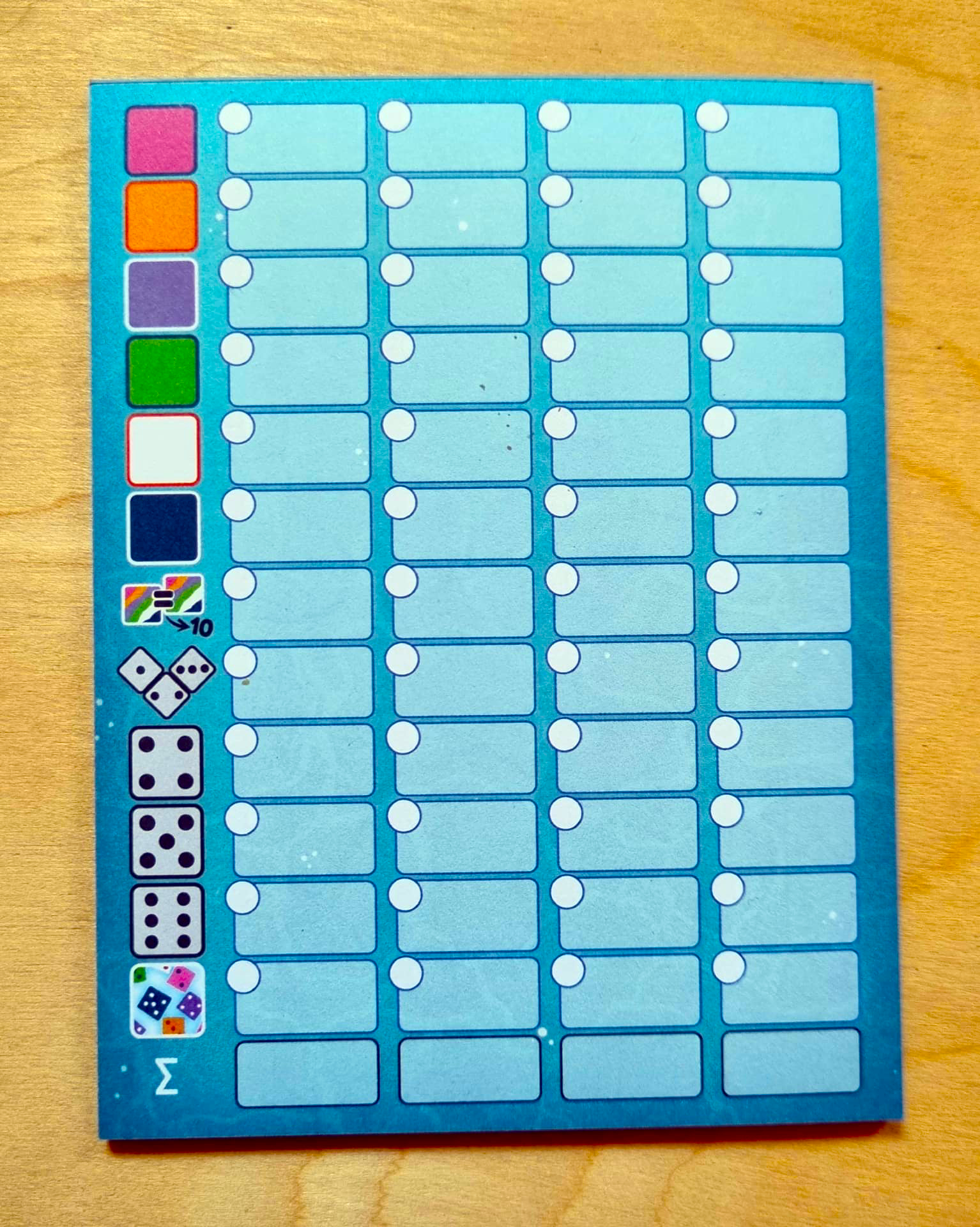 Krabice uvádí maximálně osm hráčů, ale hru může hrát tolik lidí, kolik dobře uvidí, co padlo na kostkách. Listů pro hráče je dost, jsou oboustranné a každá strana pojme čtyři partie.