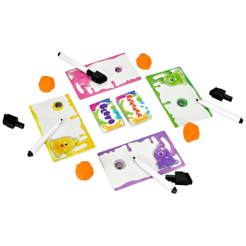 Blobíci obsahují větší plastelínový blob, několik párů veselých očiček, sadu karet se slovy i tematickými kategoriemi a také destičky se stíratelnými fixy pro všechny hráče. Všechno je připravené tak, aby mohla hra začít prakticky okamžitě po otevření krabice.