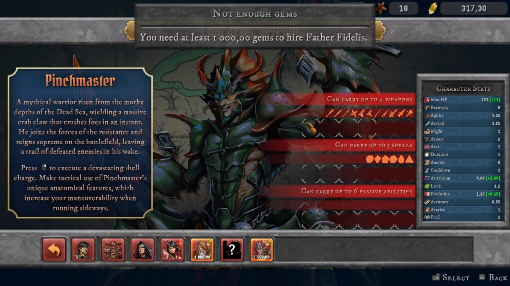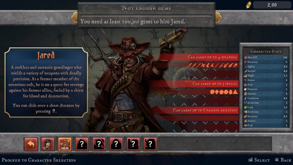 Jednotlivé hratelné postavy se liší především svými počátečními statistikami, počátečními zbraněmi a drobnými bonusy. Nejde o dramatické rozdíly, ale spíše o jemné nuance, které ovlivňují váš herní styl. Jedna postava může být rychlejší, jiná odolnější, další může mít výhodu v práci s konkrétním typem zbraní.