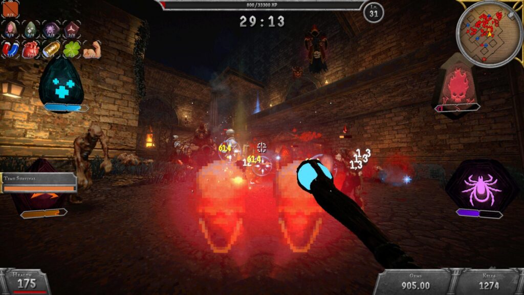 Tempo hry je vysoké a s postupem času se výrazně zrychluje. Zpočátku máte prostor se rozkoukat, ale velmi rychle se obrazovka zaplní desítkami nepřátel a hra vás nutí neustále reagovat. Každá chyba může být fatální a každé špatné rozhodnutí při výběru vylepšení se vám může vymstít o několik minut později. Také co se týče obtížnosti, to jde po chvilce nahoru. Nicméně je nutné říct zřejmé. Nečekejte vysoce propracované AI nepřátele, kteří by nějak hluboce pozičně spolupracovali. I když je paleta nepřátel pestrá, od obyčejných zombíků po démonické lordy, tak všichni mají jediný cíl. Zničit vás. Někteří na vás budou nabíhat, jiní na vás plivat sliz a další po vás střílet nebo házet oštěpy. Postupem se také zvyšuje jejich odolnost, a to nejen minibossů a bossů, ale i běžných NPC nepřátel.