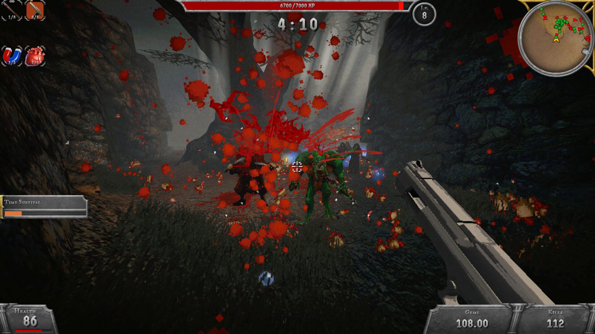 Tempo hry je vysoké a s postupem času se výrazně zrychluje. Zpočátku máte prostor se rozkoukat, ale velmi rychle se obrazovka zaplní desítkami nepřátel a hra vás nutí neustále reagovat. Každá chyba může být fatální a každé špatné rozhodnutí při výběru vylepšení se vám může vymstít o několik minut později. Také co se týče obtížnosti, to jde po chvilce nahoru. Nicméně je nutné říct zřejmé. Nečekejte vysoce propracované AI nepřátele, kteří by nějak hluboce pozičně spolupracovali. I když je paleta nepřátel pestrá, od obyčejných zombíků po démonické lordy, tak všichni mají jediný cíl. Zničit vás. Někteří na vás budou nabíhat, jiní na vás plivat sliz a další po vás střílet nebo házet oštěpy. Postupem se také zvyšuje jejich odolnost, a to nejen minibossů a bossů, ale i běžných NPC nepřátel.