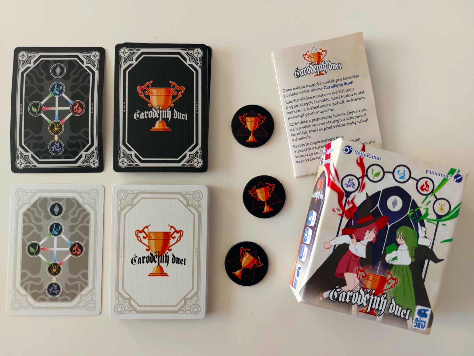 Víte, když se řekne hra plná magie, často očekáváte Zaklínače: Starý svět, ještě ideálně v deluxe edici, abyste zastavěli celý stůl s mnoha efekty. Najednou je však před vámi Čarodějný duel, malá roztomilá krabička do kapsy o velikosti Dokonalého pikniku, takže roztomilost očekávána, opak byl ale pravdou. Neboť to všechno, co v té minikrabičce vidíte, je neuvěřitelně dospělé.