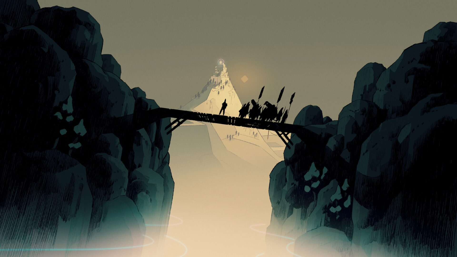 Vizuální stránka je bezpochyby jedním z největších lákadel hry. Cataclismo se pyšní nádherným, stylizovaným grafickým stylem, který připomíná ručně kreslený komiks od mistrů, jako je Moebius. Cel-shadová grafika s výraznými linkami a pečlivě volenou paletou barev vytváří dechberoucí scenérie. Kontrast mezi světlými, nadějnými stavbami z bílého kamene a temnou, fialovou mlhou plnou hrozivých siluet monster je úžasný. Každý stavební díl, každá jednotka a každá animace je vytvořena s neuvěřitelným citem pro detail. Je to jedna z těch her, kde se často zastavíte jen proto, abyste se kochali výhledem z vaší nově postavené věže.