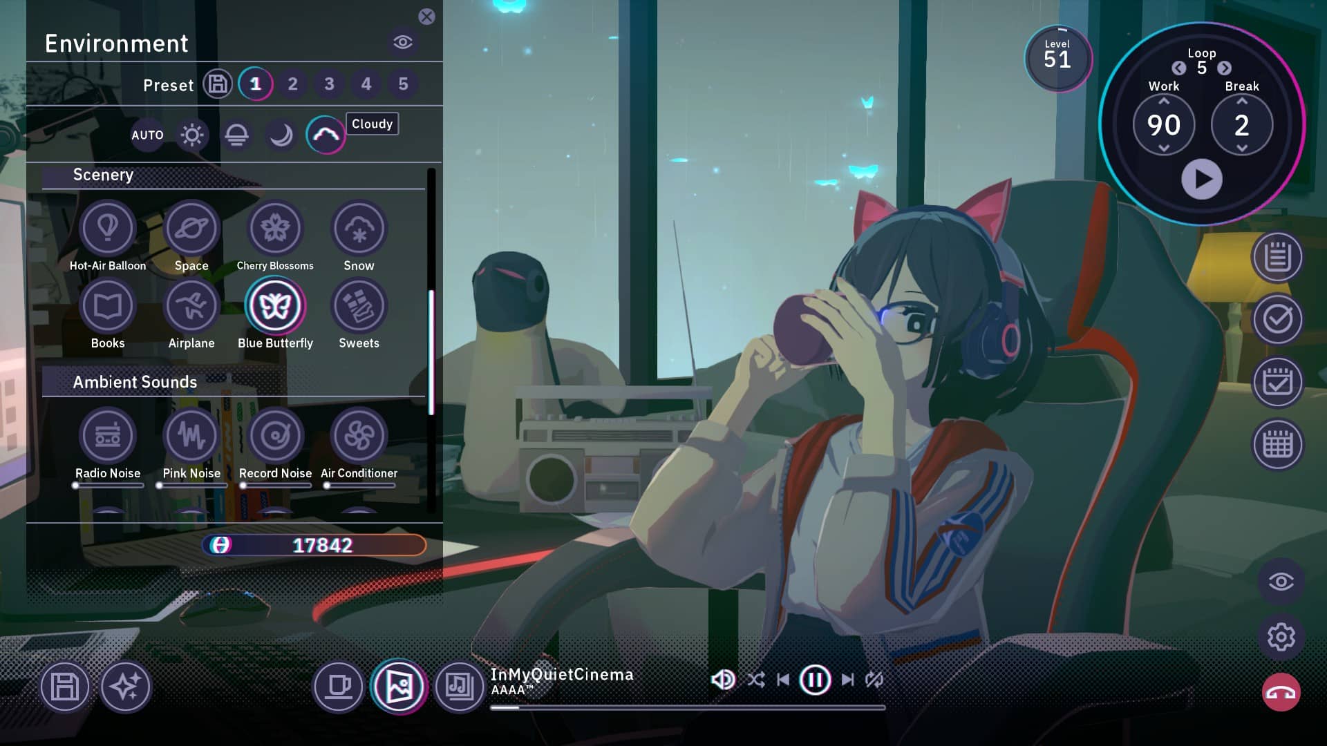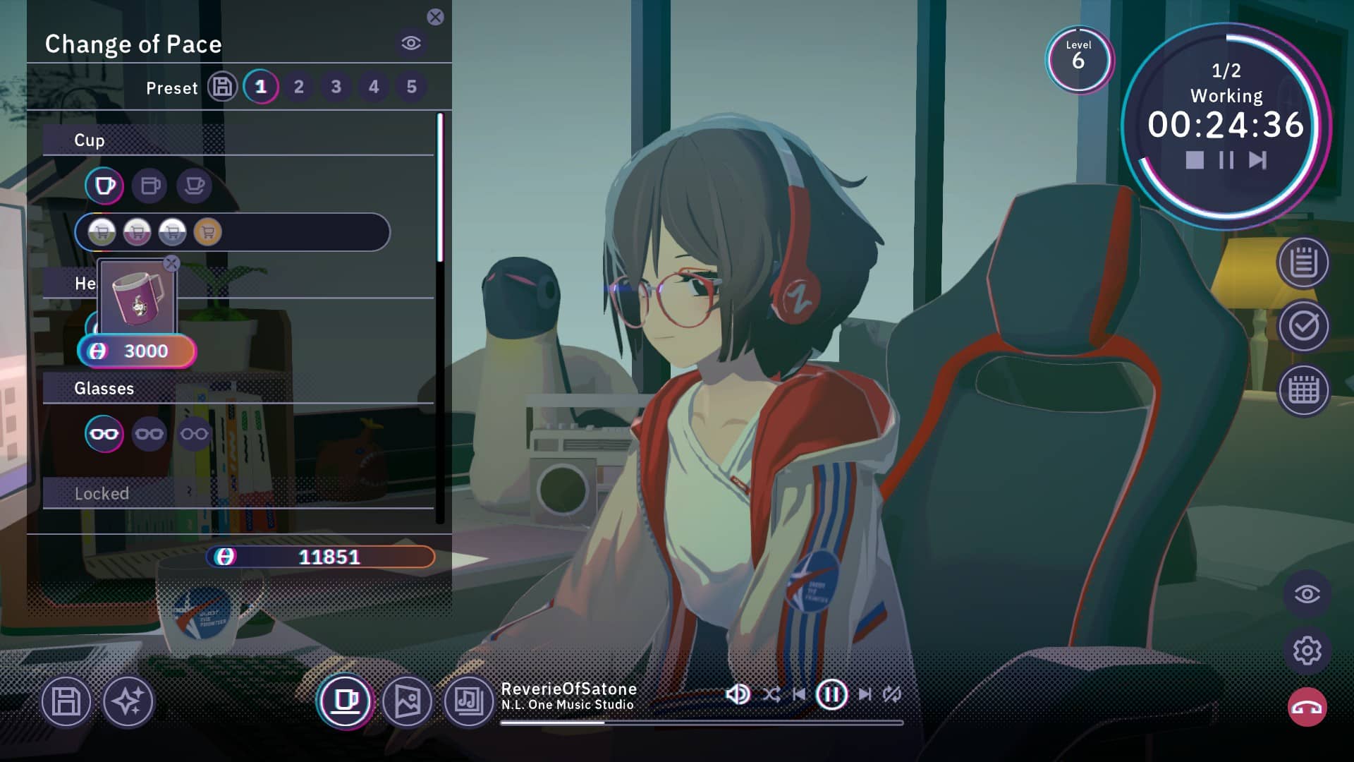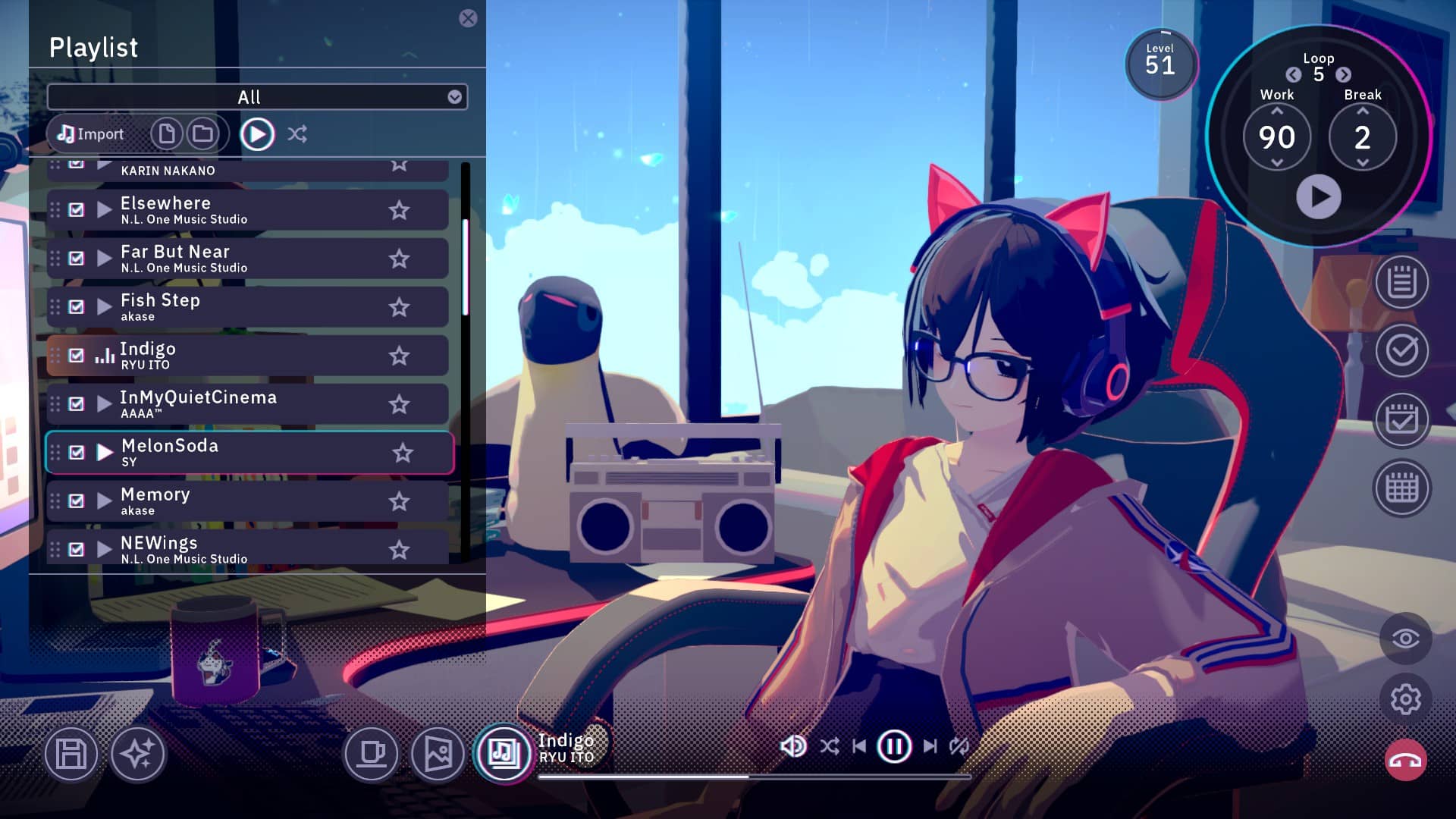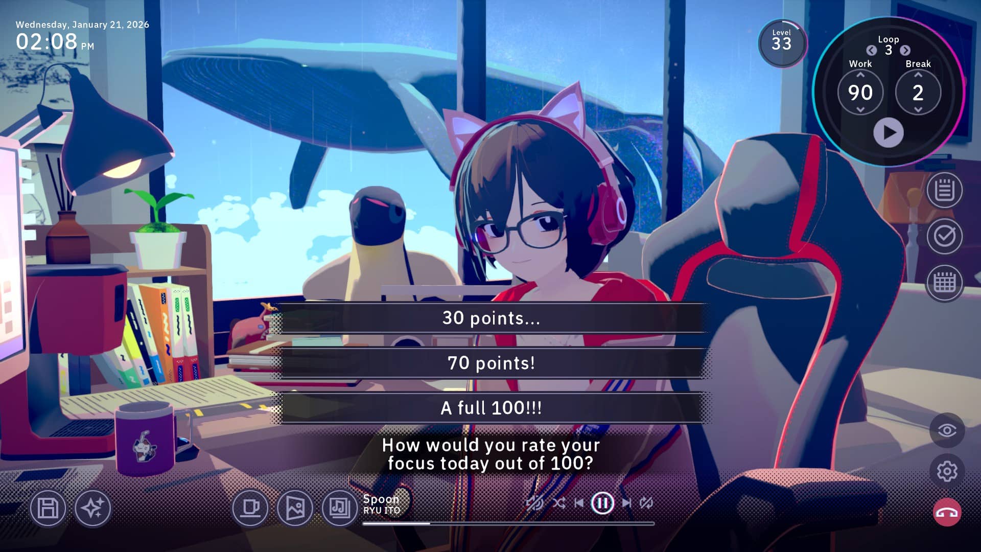 Chill with You: Lo-Fi Story nabízí také praktické nástroje, které z něj dělají plnohodnotného pomocníka při práci. K dispozici je seznam úkolů, kam si můžete zapisovat jednotlivé body a postupně je odškrtávat. Nechybí ani poznámkový blok a kalendář, kde vidíte přehled své aktivity. Tyto funkce nepřebíjejí hlavní zážitek, ale jemně ho doplňují. Vše je navrženo tak, aby vás to nerozptylovalo, ale naopak podporovalo v soustředění. Hra vás nenutí neustále něco kontrolovat, spíše vám nabízí prostor, kam si můžete své myšlenky uložit.
