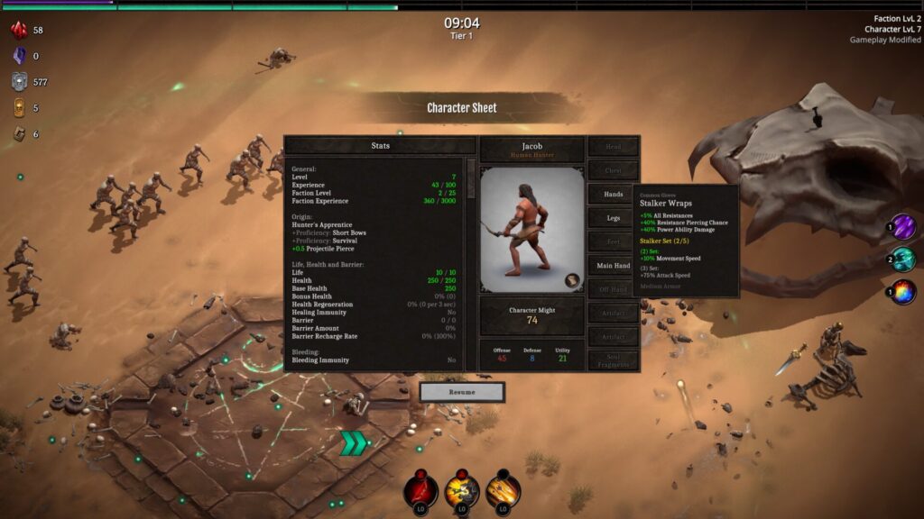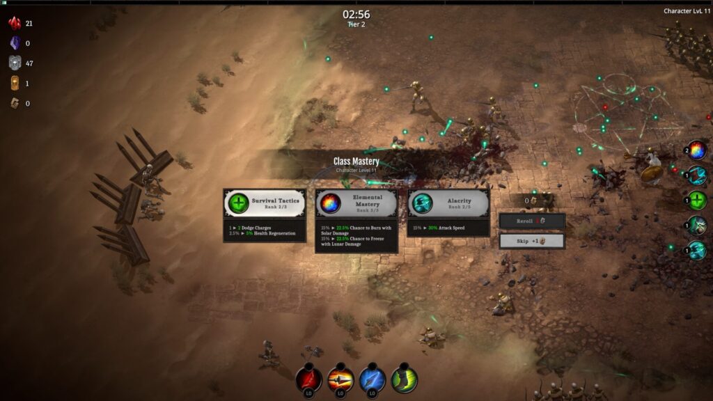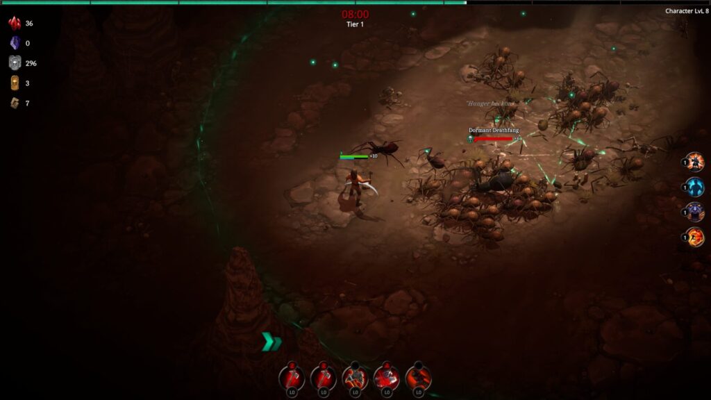 Nyní se podíváme blíže právě na roguelite prvky, které jsou postaveny právě kolem tzv. rituálů, jak jsou označeny jednotlivé běhy, které mají jasně daný cíl. Přežít co nejdéle, nasbírat zdroje a postupně posílit svou postavu. Každý rituál začíná relativně pomalu, ale postupně nabírá na intenzitě, až se obrazovka zaplní nepřáteli, efekty a vizuálním chaosem. Právě v těchto momentech hra nejlépe ukazuje svou sílu, protože vás nutí reagovat instinktivně, ale zároveň takticky.