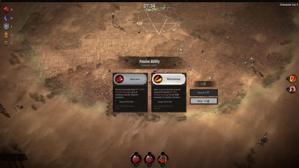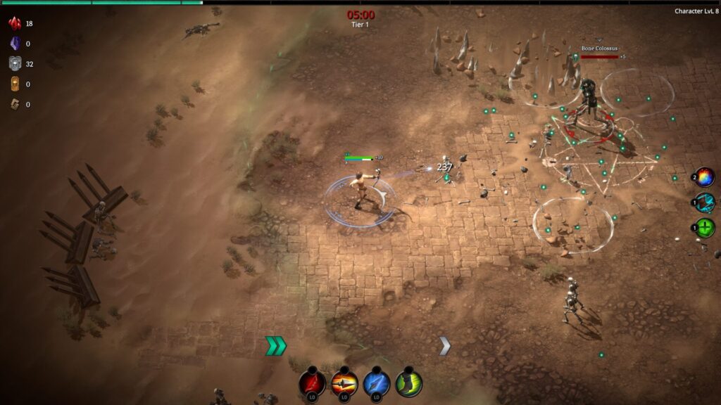 Vy se tak vlastně hlavně staráte o to, kam ustoupit, kdy riskovat a jaké vylepšení zvolit, abyste časově omezenou arenu přežili. Načež je rituál kompletní, vaše postava zemře a vy se vracíte na začátek, kde můžete v chrámech vylepšit specifické schopnosti a pasivní skilly. Tempo je nicméně rychlé, nekompromisní a často velmi neúprosné, zejména v pozdějších fázích hry.