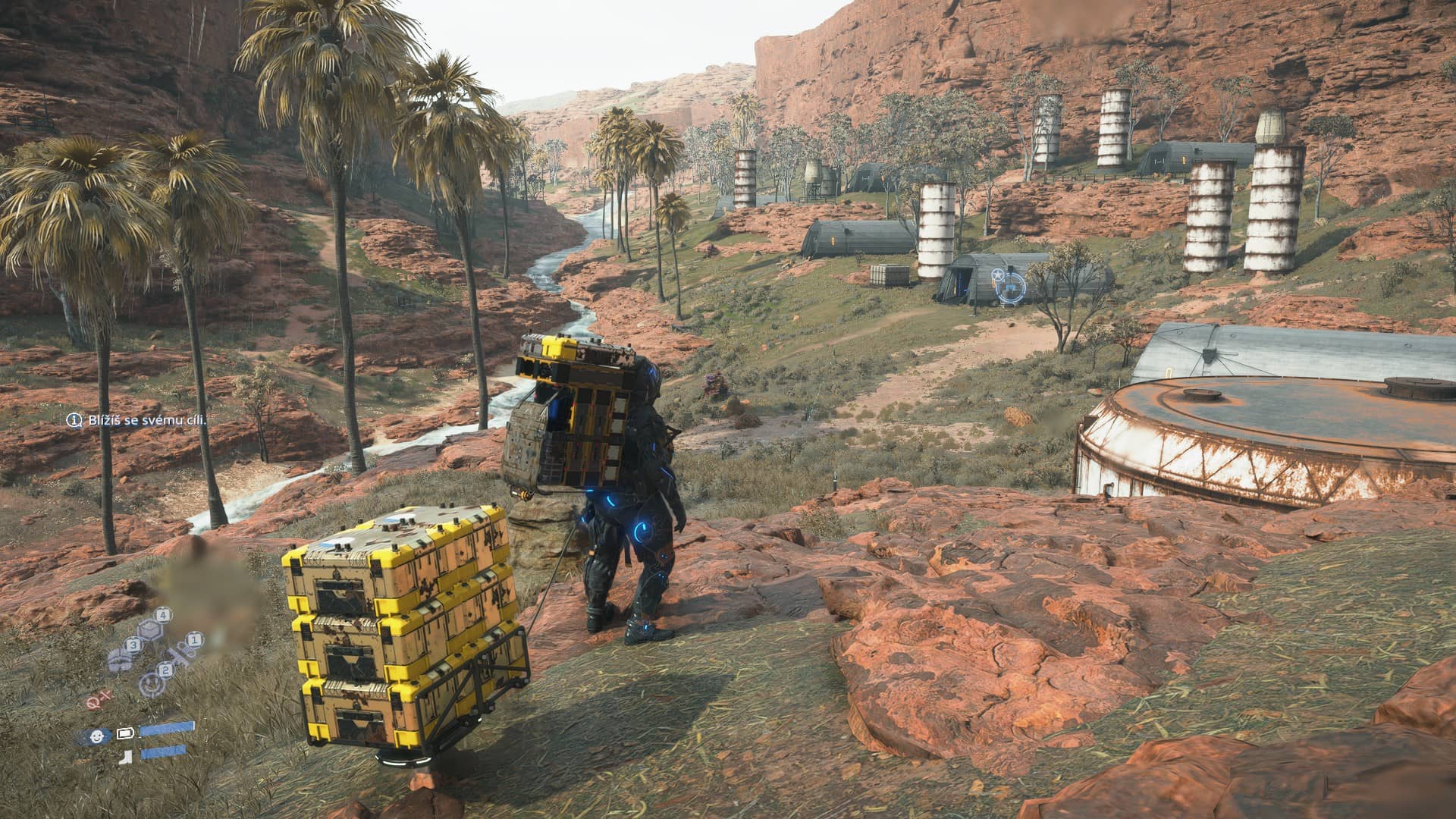Krátkým pohledem zabrouzdáme do příběhu, který však nebudu nějak dalekosáhle popisovat. Pokud byste se z hlediska příběhu či jednotlivých mechanik chtěli dozvědět něco více, odkážu vás spíše na recenzi konzolové verze Death Stranding 2: On the Beach, kde můj kolega Matěj vše pečlivě popsal. Nicméně v krátkosti nás tato příběhová hra zavede do období těsně po událostech z jedničky, kdy nás v našem novém ‚‚domově‘‘ navštíví Fragile s prosbou o připojení se ke skupině Drawbridge. Ta má za cíl propojit chirální sítí další kontinent. Po úvodní kapitole v Mexiku se ocitáme v Austrálii, kde budeme opět propojovat různé skupiny lidí napříč kontinentem, žijící v bunkrech či tzv. uzlových městech a základnách, do společného svazku zvaného UCA. Sam se tak podruhé vydává na strastiplnou cestu plnou překážek, kterou mu budou kazit nepřátelské tábory Mezků a Zbojníků či bohaté rozmary přírody a meteorologických jevů. Tentokrát to však nebude jen o časodéšti, jenž má schopnost manipulovat s časem a urychlit stárnutí čehokoliv, čeho se dotkne. Nově se dočkáme například branotřesení (něco jako zemětřesení), písečně bouře či roje meteoritů, které dokáží dokonce způsobit požár a zkomplikovat vám vaši naplánovanou cestu. Vývojáři si u Death Stranding 2: On the Beach s tímto aspektem opravdu vyhráli a musím uznat, že se mi mnohem rozmanitější příroda a efekty ve hře velmi líbily. Ano, barevná Austrálie už nemusí mít pro každého takovou temnou a strašidelnou atmosféru jako Severní Amerika z prvního dílu, ale z hlediska vizuálního zpracování je dvojka mnohem zajímavější a díky tomu i v hratelnosti o něco zábavnější.