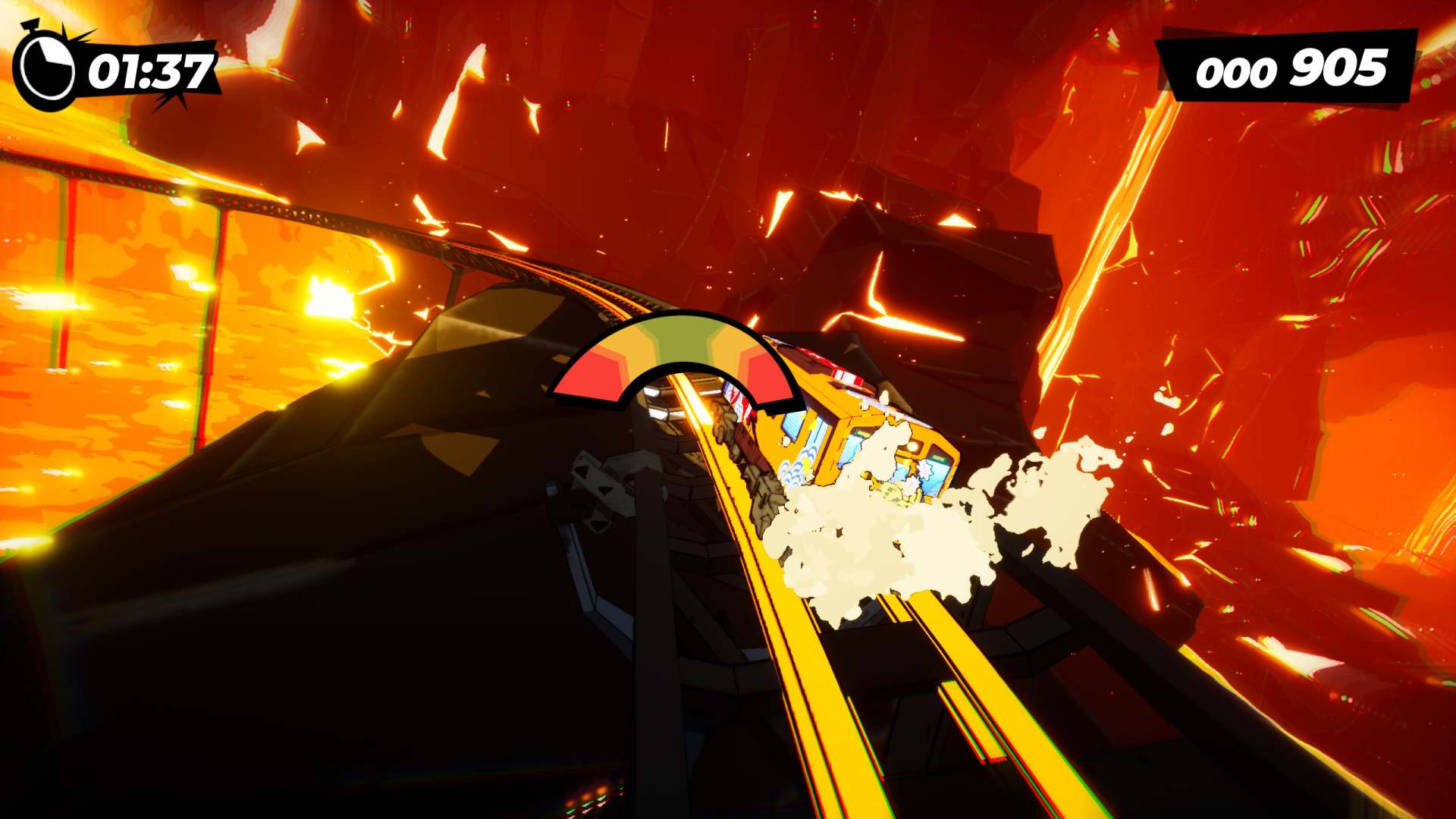 V Denshattack! ovládáte malou motorovou jednotku s mentalitou adrenalinového skejťáka. Už ji nebaví nudné přejíždění mezi stanicemi, a tak divoce poskakuje mezi krkolomnými tratěmi, přeskakuje propasti, vyhýbá se překážkám a předvádí u toho různé akrobatické triky. Vlastně se dá hra poměrně přesně popsat jako takový Tony Hawk’s Pro Skater pro šotouše. Namísto skateboardu máte vlak, namísto ramp náspy a mosty… a namísto realismu naprostou svobodu. Tak nějak tuším, že dalším z inspiračních zdrojů byly moderní 3D hry s ježkem Sonicem. Rozhodně tam najdete podobný vibe a srovnatelné nadšení z pohybu.