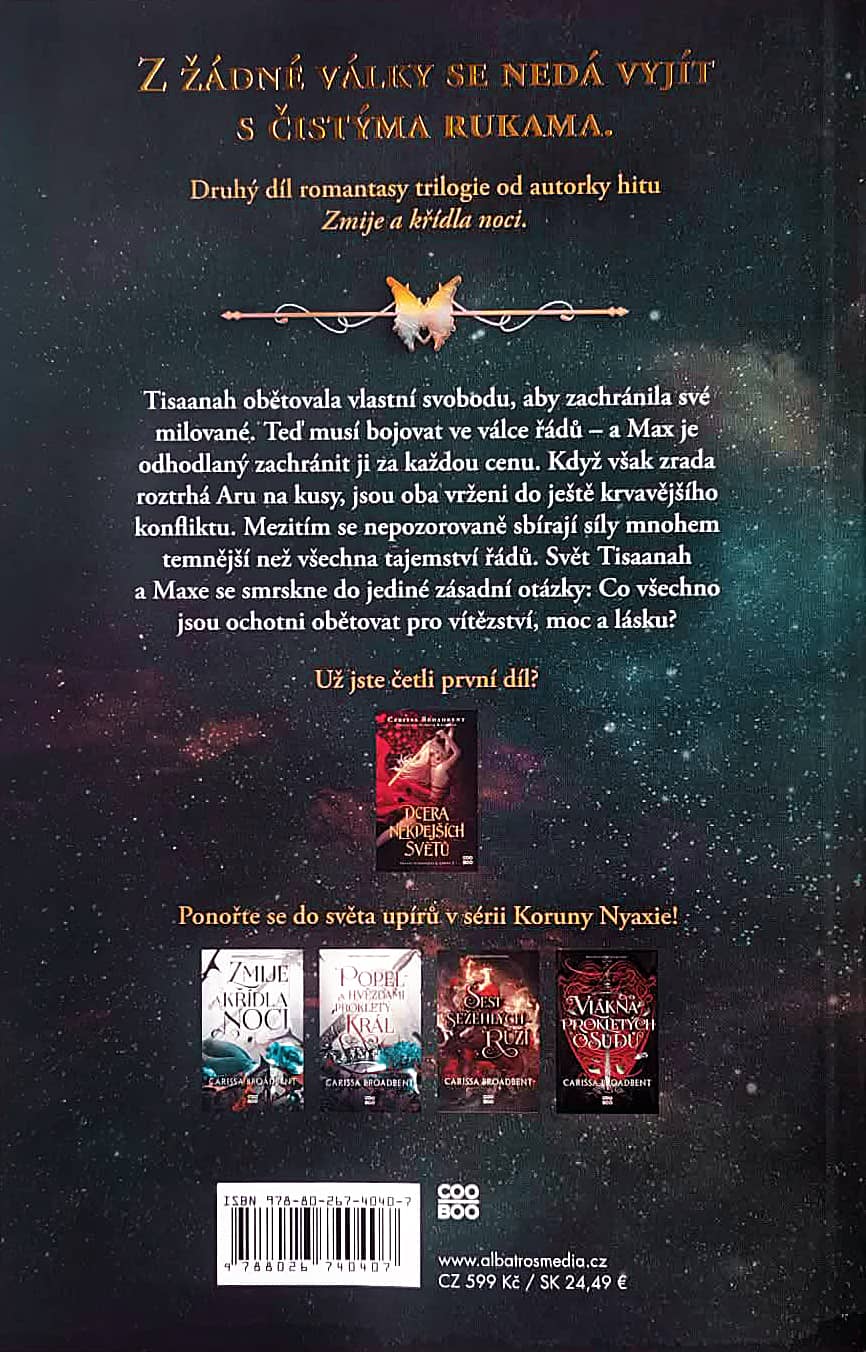 Děti padlých bohů jsou temnější, rozsáhlejší a ambicióznější než první díl. Nabízejí hlubší pohled do světa magie, silnější emoce a závěr, který vás nenechá vydechnout. Je to kniha o obětech, moci a lásce, která musí přežít v prostředí, kde nic není zadarmo. Já už nemohu dospat na velkolepé finále, v němž půjde doslova o všechno. Protože jestli něco Carissa Broadbent umí, pak je to nechat čtenáře stát na okraji propasti a chtít víc, i když ví, že pád je roztříští na milion bolavých kousků.