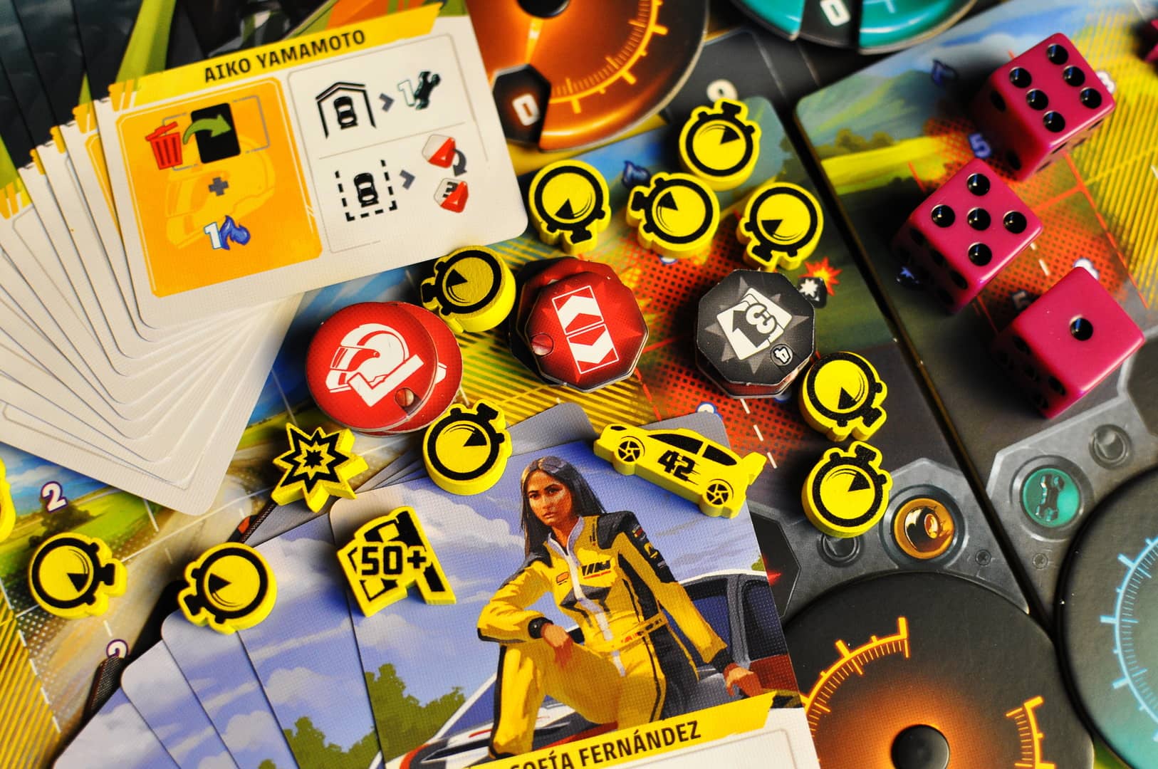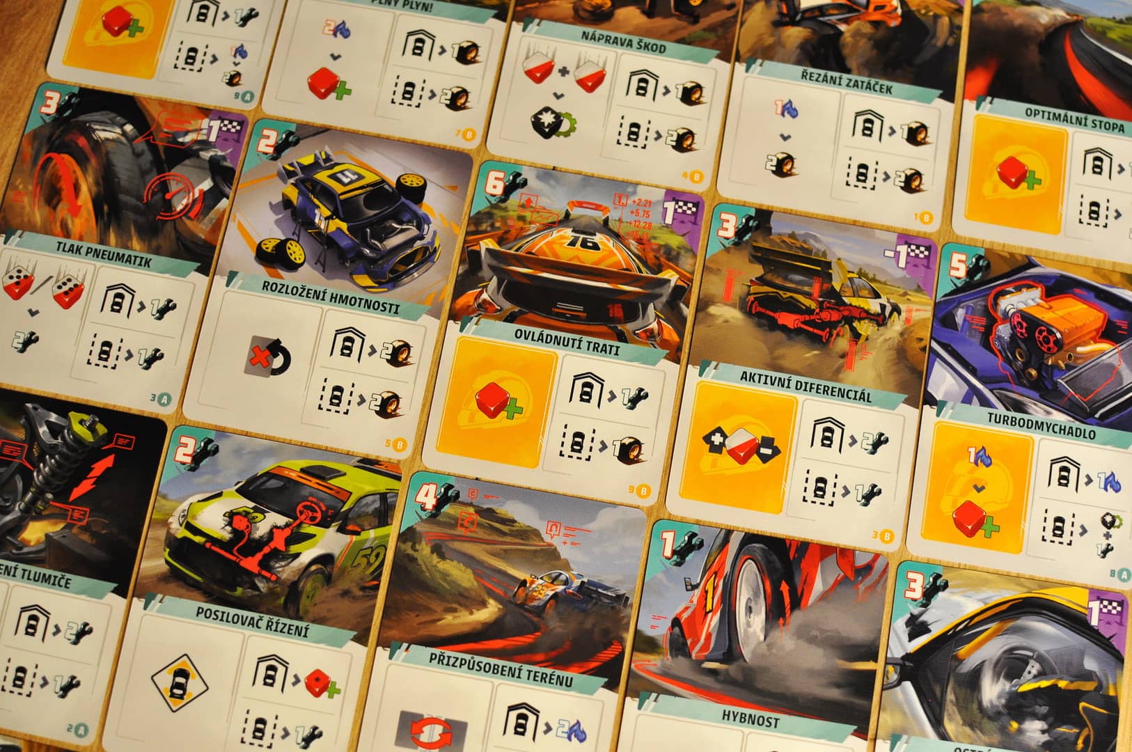 Jedním z největších kamenů úrazu je pro mě ikonografie. Hra obsahuje enormní množství ikon a jejich intuitivnost je přinejmenším diskutabilní. Efekty karet často kombinují pozici auta, barvu zóny, typ kostky i její hodnotu. Ano, celý systém dává smysl ve chvíli, kdy se do něj ponoříte, ale proces učení je zbytečně náročný. Přehled ikon zabírá celou zadní stranu pravidel a je to jediné místo, kde jsou všechny pohromadě. Během partie tak pravidla neustále kolují mezi hráči. A ano, budu to kritizovat pokaždé, protože hráčské přehledy, takzvané lama karty pro lamy, jako jsem já, by měly být samozřejmostí. Pár listů papíru by cenu hry opravdu nevystřelilo a výrazně by zvýšilo komfort hraní.