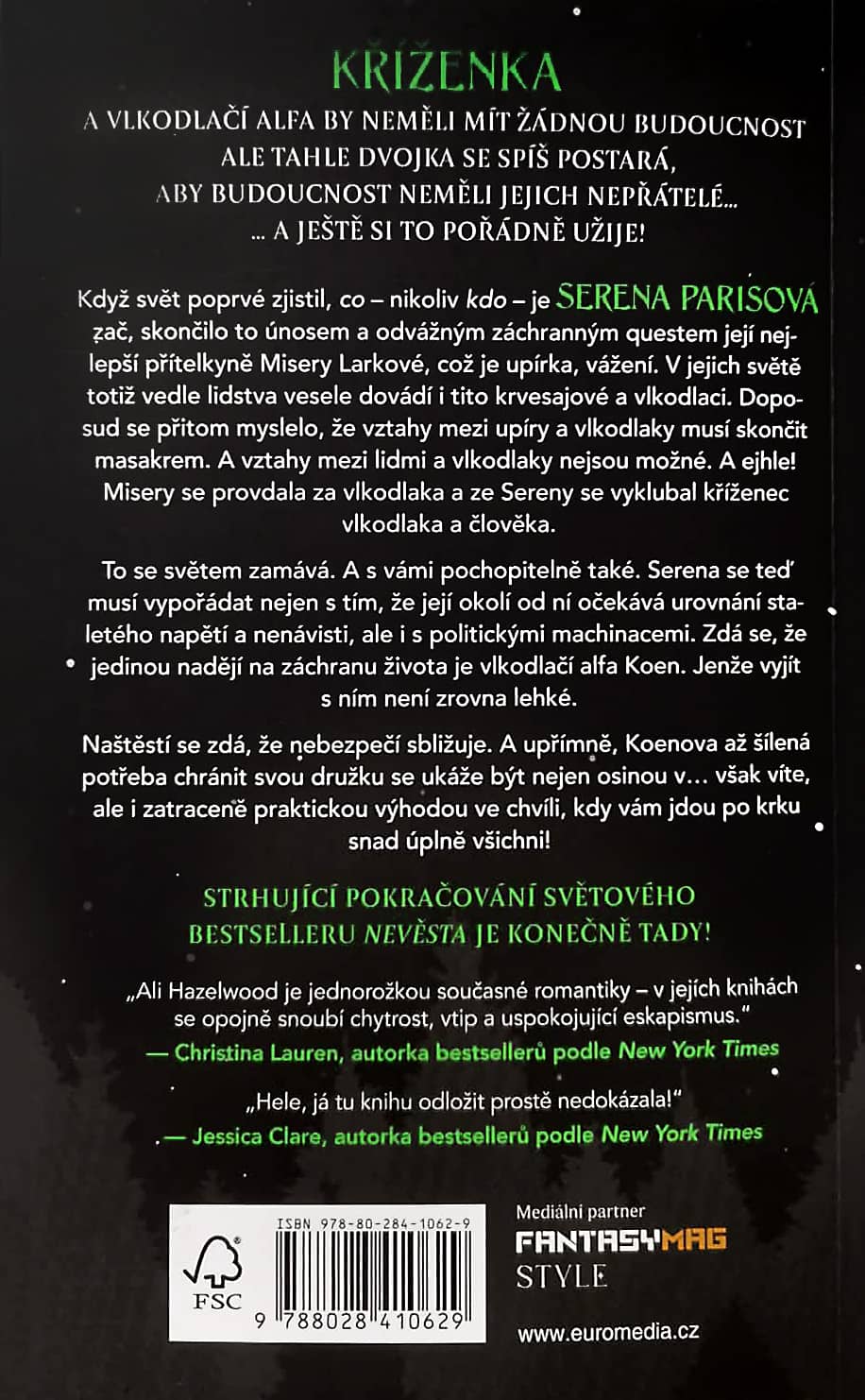 Pokud máte pocit, že váš čtenářský život potřebuje trochu toho vlčího koření, špetku osudové lásky, pořádnou porci jiskřivých dialogů a jako přílohu umanutou hrdinku, která si odmítá nechat cokoli diktovat, pak je Družka přesně tou knihou, po které byste měli sáhnout. Pokračování románu Nevěsta slibuje návrat do světa, kde láska není jen otázkou citu, ale také pachu, instinktu, genetiky a jednoho velmi neochotného alfa samce s vizáží sexy dřevorubce. Jestli vás už první díl naučil, že u autorky vystupující pod pseudonymem Ali Hazelwood není romantika nikdy úplně jednoduchá, pak vás Družka v tomto ohledu rozhodně nezklame.