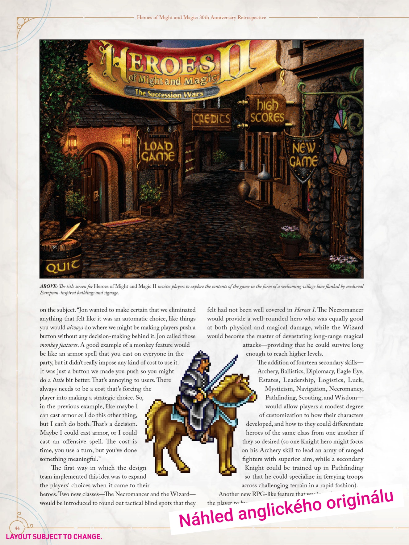 Je super vidět, že pro Xzone je tohle víc než jen byznys. Jak řekl Jan Bobrovský: „„Heroes of Might and Magic jsou pro Xzone obrovská srdcovka. Tahle série je s naší firmou spojená prakticky od samotného začátku a dlouhodobě patří mezi nejmilovanější herní značky na české scéně. O to víc nás těší, že jsme v Česku mohli vydat deskovou adaptaci Heroes of Might and Magic III a nyní můžeme fanouškům nabídnout i takto výpravnou knižní poctu celé sérii.“ Po tom, co nám přinesli lokalizovanou deskovku Heroes III, je tohle další logický krok. O překlad se postará Pavel Skoták. Kniha vyjde ve druhém čtvrtletí roku 2026 a předobjednávky už jsou spuštění. Já tam tu svou sázím teď, protože listovat historií Erathie a Enrothu v pevné vazbě, to je povinnost pro každého, kdo kdy bránil hrad proti přesile s jedním černým drakem.