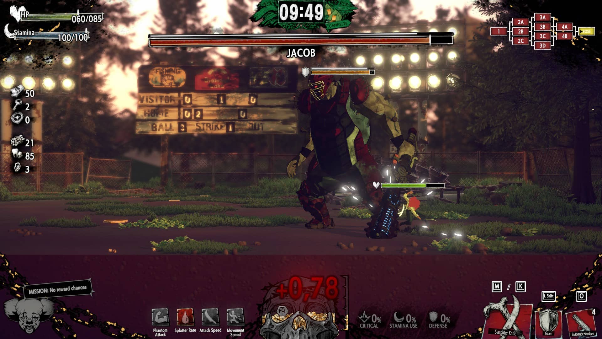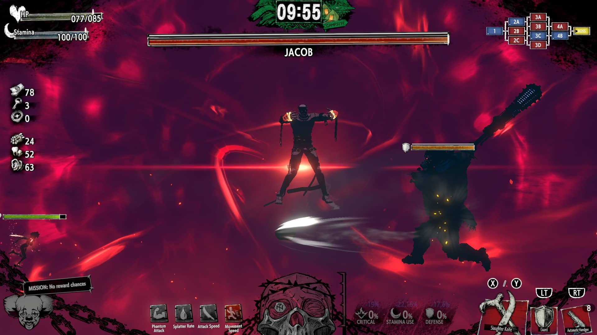 Hotel Barcelona definuje sám sebe jako 2.5D slasher, ale toto označení je až příliš skromné. Jde o hardcore akční titul, který vyžaduje precizní načasování, taktický pohyb a neustálou adaptaci. Na rozdíl od mnoha plošinovek zde nestačí jen procházet úrovně. Jednotlivá setkání se proměňují v jakousi malou arénu, kde je třeba využít její prostředí.