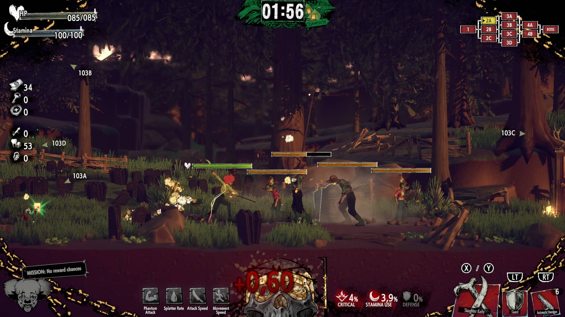 Agresivita je v Hotelu Barcelona odměňována. Čím více bojujete, tím více jste pokryti krví (což je vizuální lahůdka i herní indikátor). Krev není jen kosmetický efekt, ale palivo. Útočením a pobíjením nepřátel plníte Skull Gauge (Lebkovou lištu). Když lišta dosáhne vrcholu, můžete aktivovat Carnival Awakening.