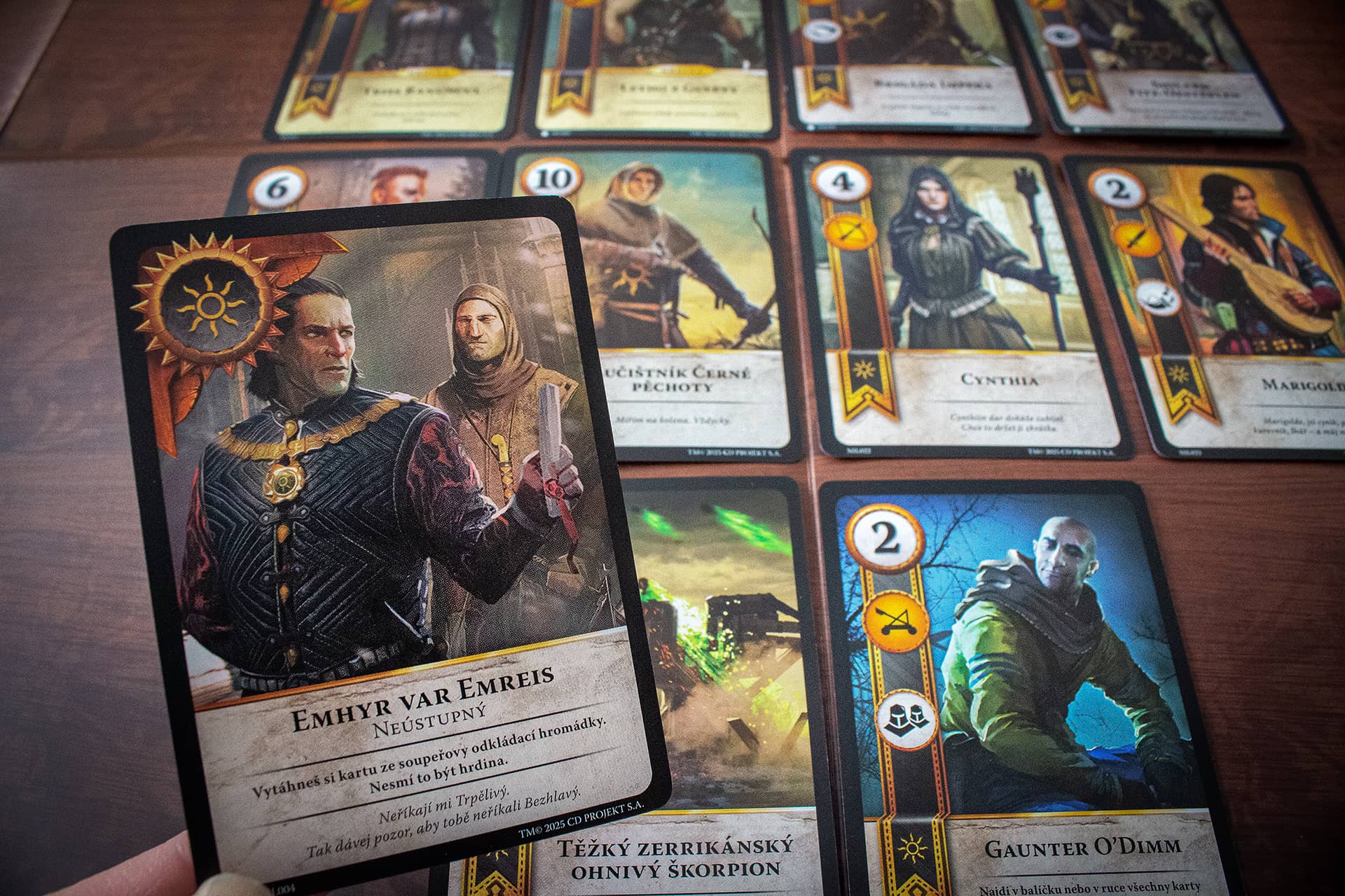 Gwint má v sobě kus historie Kontinentu. S českým vydáním a formátem uzpůsobeným pro časté hraní je radost ho vytáhnout na stůl. Pro každého fanouška, který strávil desítky hodin v Zaklínači 3 a zbavil mapu všech otazníčků, je to jasná povinnost. Na své si přijde i nováček, který hledá zábavnou karetní hru s vysokou dávkou taktiky. Zatímco pěju chválu na karty a balení, zbylé komponenty naopak působí dojmem, jako by na ně už nezbyl budget. Nejvýrazněji je to znát u skládací herní podložky. Podobně je to také s žetony a zmíněnou kartonovou mincí. Všechny tyto prvky plní svou funkci, ale jejich papírové provedení postrádá tu hmatovou radost a robustnost, kterou by si Zaklínač zasloužil.