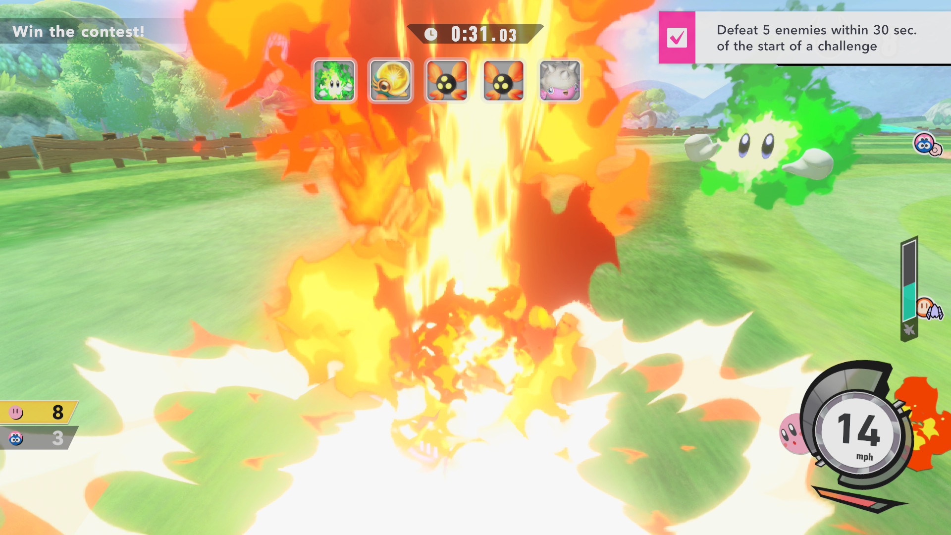 Skutečná síla Kirby Air Riders se však ukazuje až v online režimech. Závody Air Ride a Top Ride se online hrají fantasticky. Jsou rychlé, chaotické, napínavé, a zároveň férové. Každé vítězství má váhu a každá porážka motivuje k dalším pokusům. I City Trial má online o něco lepší rytmus než v sólové verzi, ale obecné problémy zůstávají a přípravná fáze zkrátka není tak zábavná jako její vyústění v minihře. Přesto množství zábavy, které multiplayer nabízí, snadno převáží tyto nedostatky.