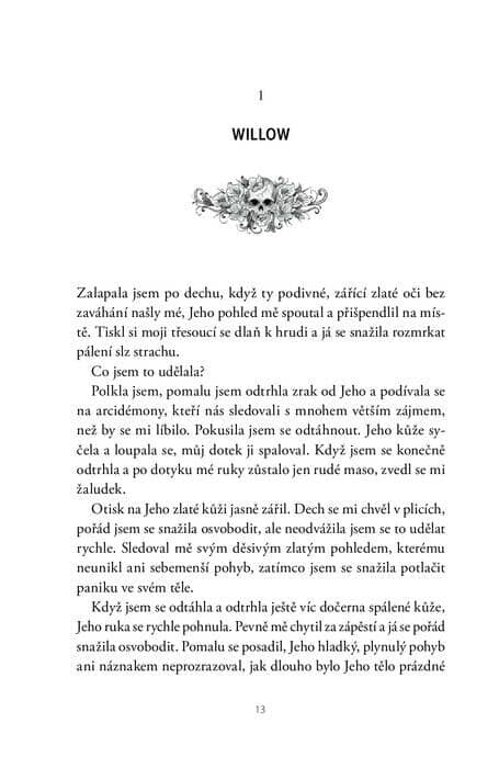 Willow na rozdíl od něj odpouštět nedokáže. Vždyť kvůli jeho návratu zemřeli nevinní lidé, celý její život byl jen součástí jeho plánu a teď má ještě přijmout roli Luciferovy manželky? Jak by mohla? Jenže i přes všechnu bolest a odpor, který vůči němu cítí, stačí jediný jeho dotyk – a všechno, co si zakázala, se v ní probudí. V její hlavě zuří boj mezi rozumem a srdcem – rozum křičí, že taková zrada je neodpustitelná, ale srdce jí neúprosně připomíná, že Gray byl vždy ten, koho milovala.