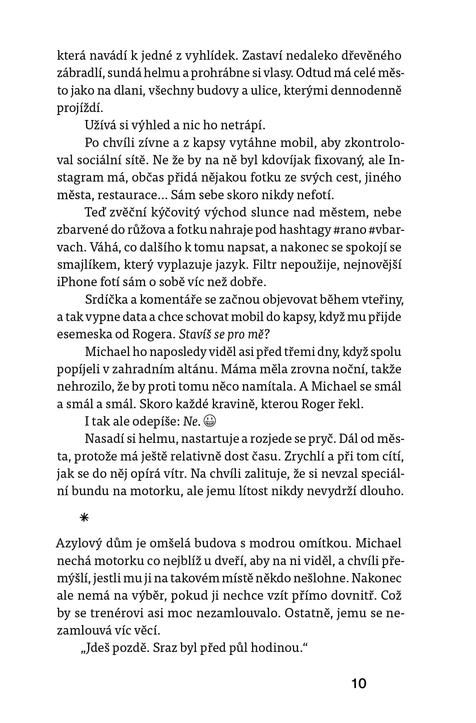 Vyzdvihnout je pak potřeba i použití přítomného času, který knize dodává šmrnc a spád, takové to krásné dramatično. Odehrává se vám to zkrátka před očima jako hodně dobrý romantický film. A že jsou jednotlivé scény realistické i ve věcech intimního rázu, je jedině dobře.