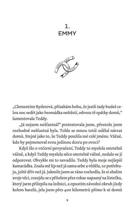 Návrat na ranč pro Emmy neznamená útěk ani úlevu, spíš tiché vyčkávání. Znovu se ocitá v prostředí, které dobře zná, a přesto se v něm necítí sebejistě. Rodinné zázemí, nevyřčená očekávání i otázky, které nikdo nepokládá, vytvářejí zvláštní napětí. Emmy je sice doma, mentálně je ale stále někde jinde. Autorka velmi dobře zachycuje její vnitřní rozpad i pomalé hledání smyslu ve chvíli, kdy zmizel cíl, který ji roky poháněl. Strach z koní tu nefunguje jen jako konkrétní trauma, ale také jako symbol ztráty kontroly a sebevědomí, s nímž se Emmy musí vyrovnat po svém a bez rychlých řešení.