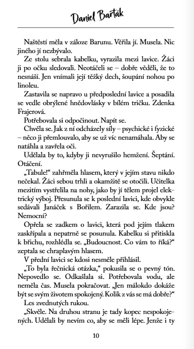 Vyprávění začíná šokujícím momentem, kdy učitelka dějepisu, postarší Marie Špalková, v jedné třídě zavraždí dva žáky a nakonec i sebe — a přiznávám, že jako učitelku dějepisu mě tahle scéna zasáhla dvojnásob.