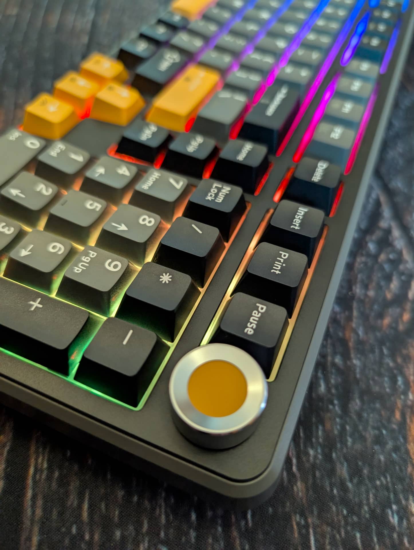 Ačkoliv je klávesnice výrazně těžší než plnohodnotné modely, je přece jen o trochu menší. Ne tak, že byste si všimli výrazného zvětšení prostoru na stole, ale neobsahuje všechna tlačítka, na která jste zvyklí. Případně jsou na jiných pozicích. Co velmi oceňuji, je běžně velká numerická klávesnice, která obsahuje vše, co k rychlým výpočtům potřebuji, když nechci sahat po myši. Jen to tlačítko, které spustí kalkulačku, na klávesnici budete hledat marně. A jelikož jde o jedno z mých úplně nejpoužívanějších, nenesu to zrovna libě. Stejně tak by řadě pisatelů nemusela vyhovovat absence českého rozložení klávesnice. Taky si nejste jistí, zda je š na trojce nebo čtyřce?