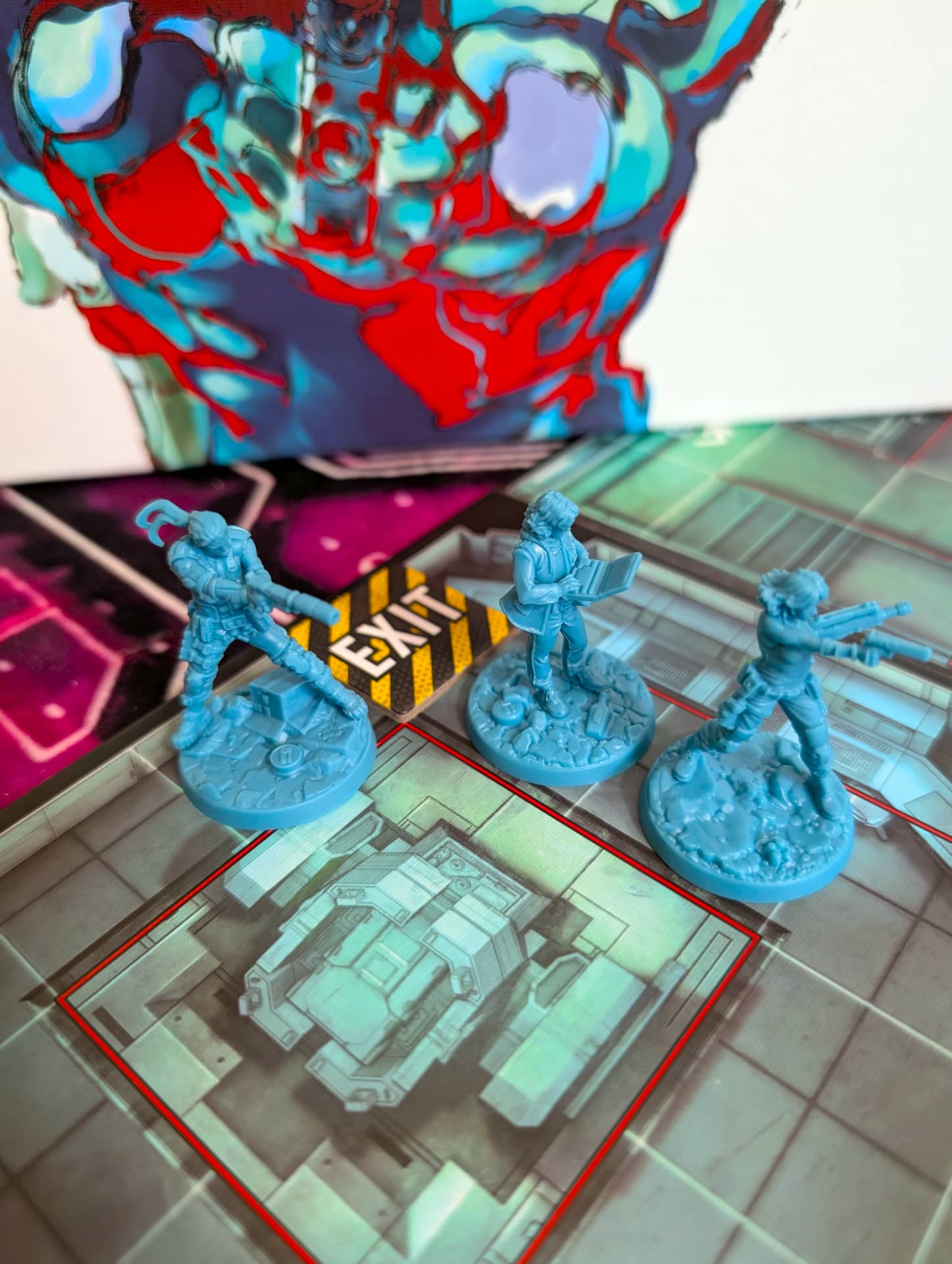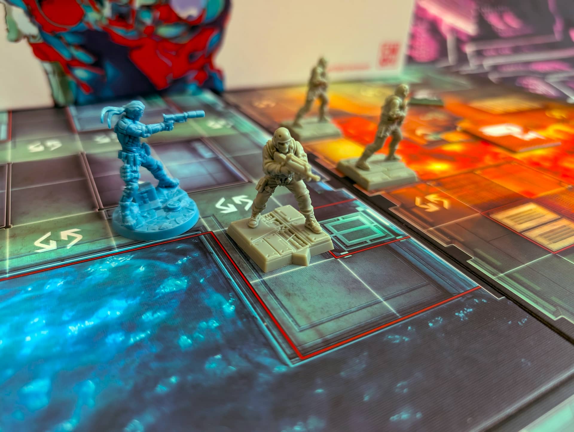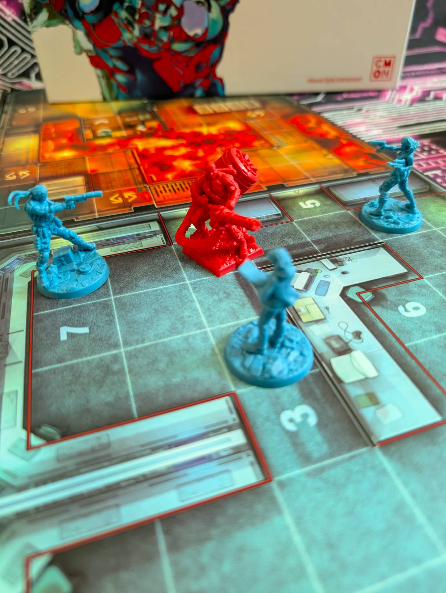 Mapové dlaždice, na kterých rozehrajete své příběhy, jsou vypůjčené přímo z videoherní předlohy, stejně jako figurky hlídek, bossů i hrdinů. Figurky jsou přitom přesně takové, na jaké jsme u her od studia CMON zvyklí: bytelné, snadno odlišitelné, živoucí a dostatečně detailní, aby vám jejich namalování zabralo nejeden večer. Atmosféru cítíte také z každého žetonu a karty, a že je toho obsahu v krabici opravdu hodně. Však také cenovka je poměrně vysoká, ale to k takto velkým hrám dnes již patří.