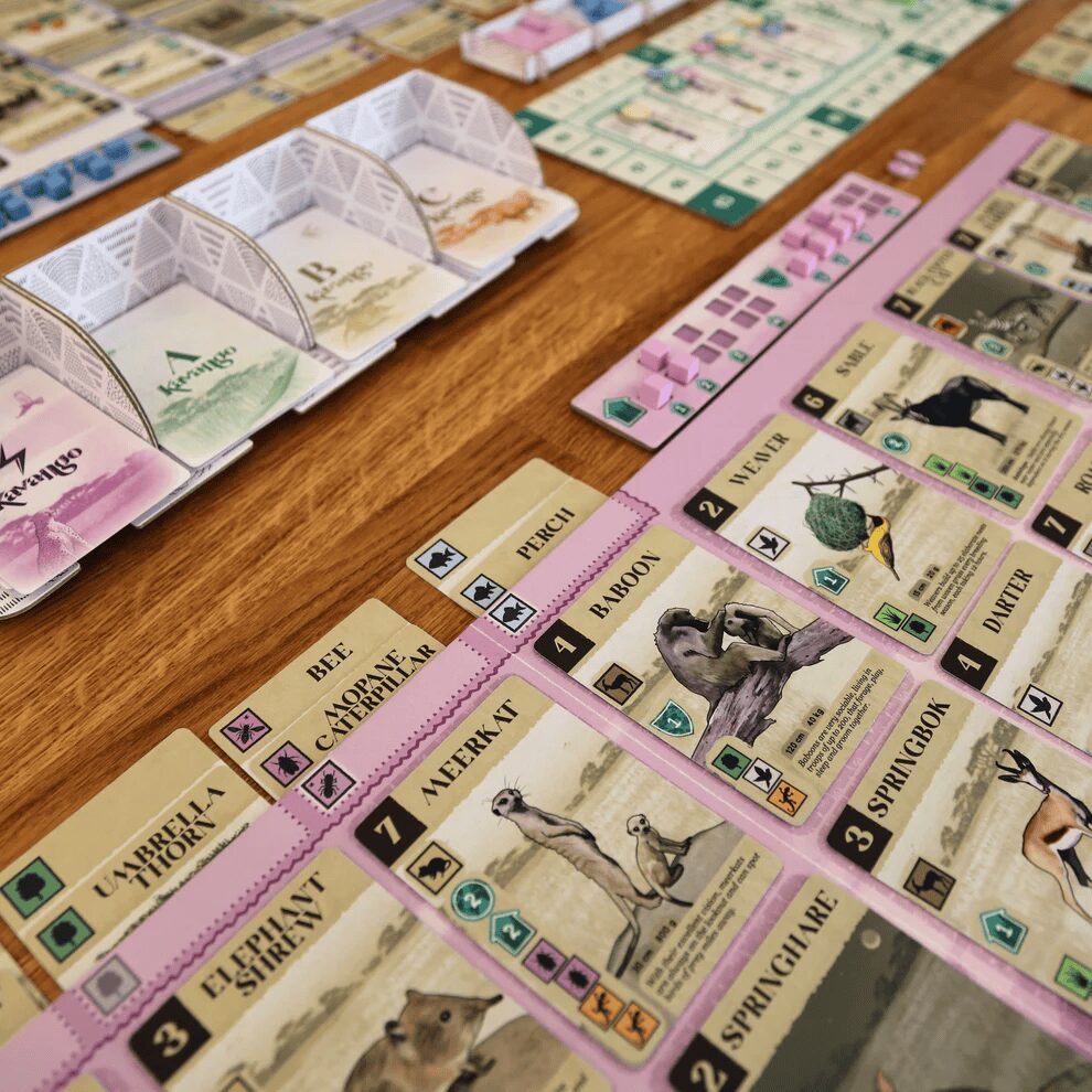 Hlavním mechanismem hry je draft, tedy výběr karet, které mezi hráči kolují. Každý si z ruky vybere jednu kartu a zbytek pošle dál. Před hráči se tak postupně rodí jedinečný ekosystém. Hra běží svižně, všichni hrají současně a do toho vstupují společné úkoly, ochrana proti pytlákům či vliv klimatických změn. Přestože pravidla mají být přístupná a partie trvá jen čtyřicet až šedesát minut, Kavango slibuje překvapivé množství strategií, které se mění s počtem hráčů i tahy soupeřů.