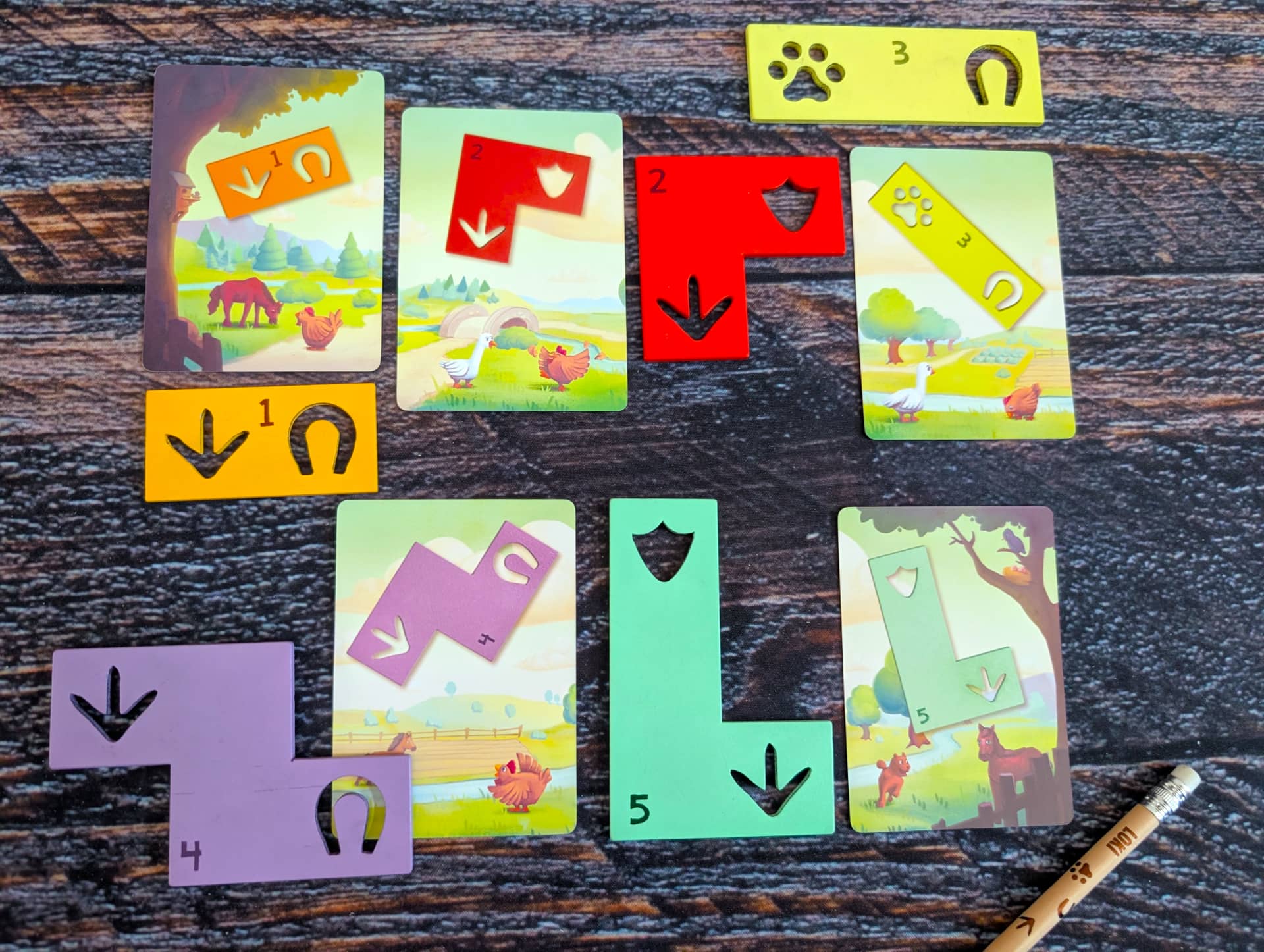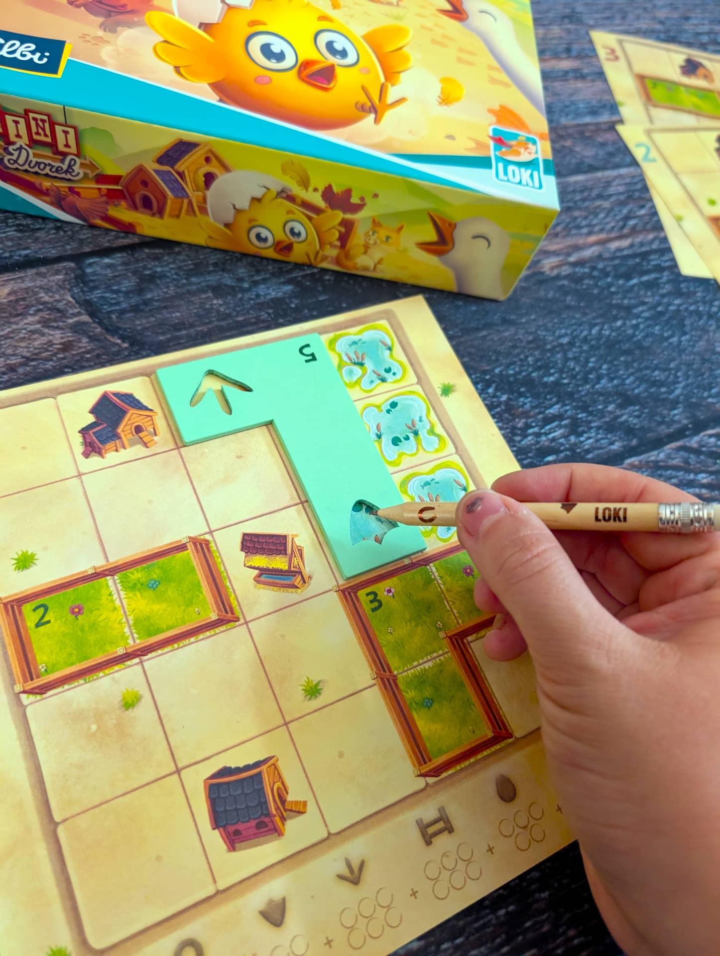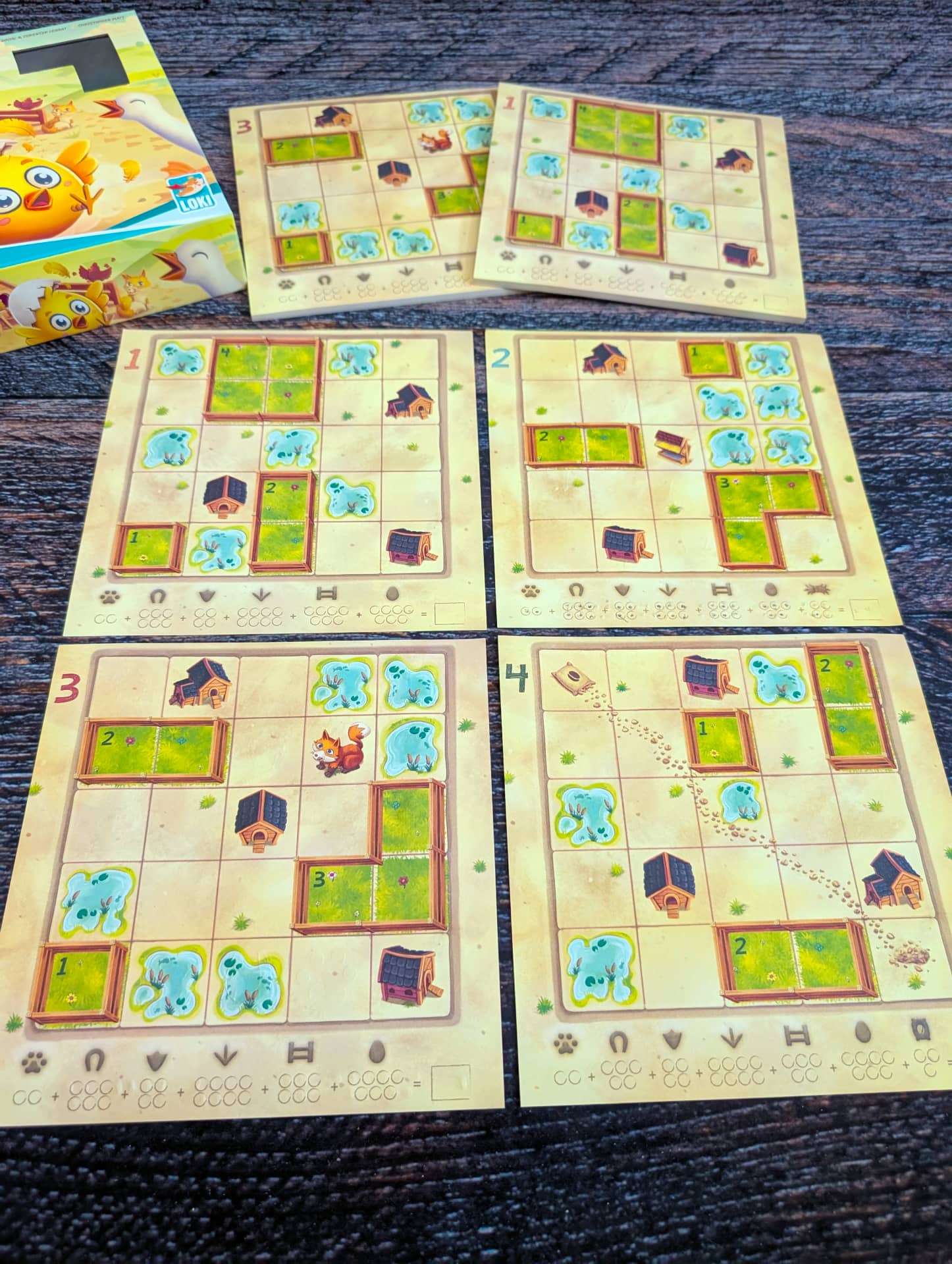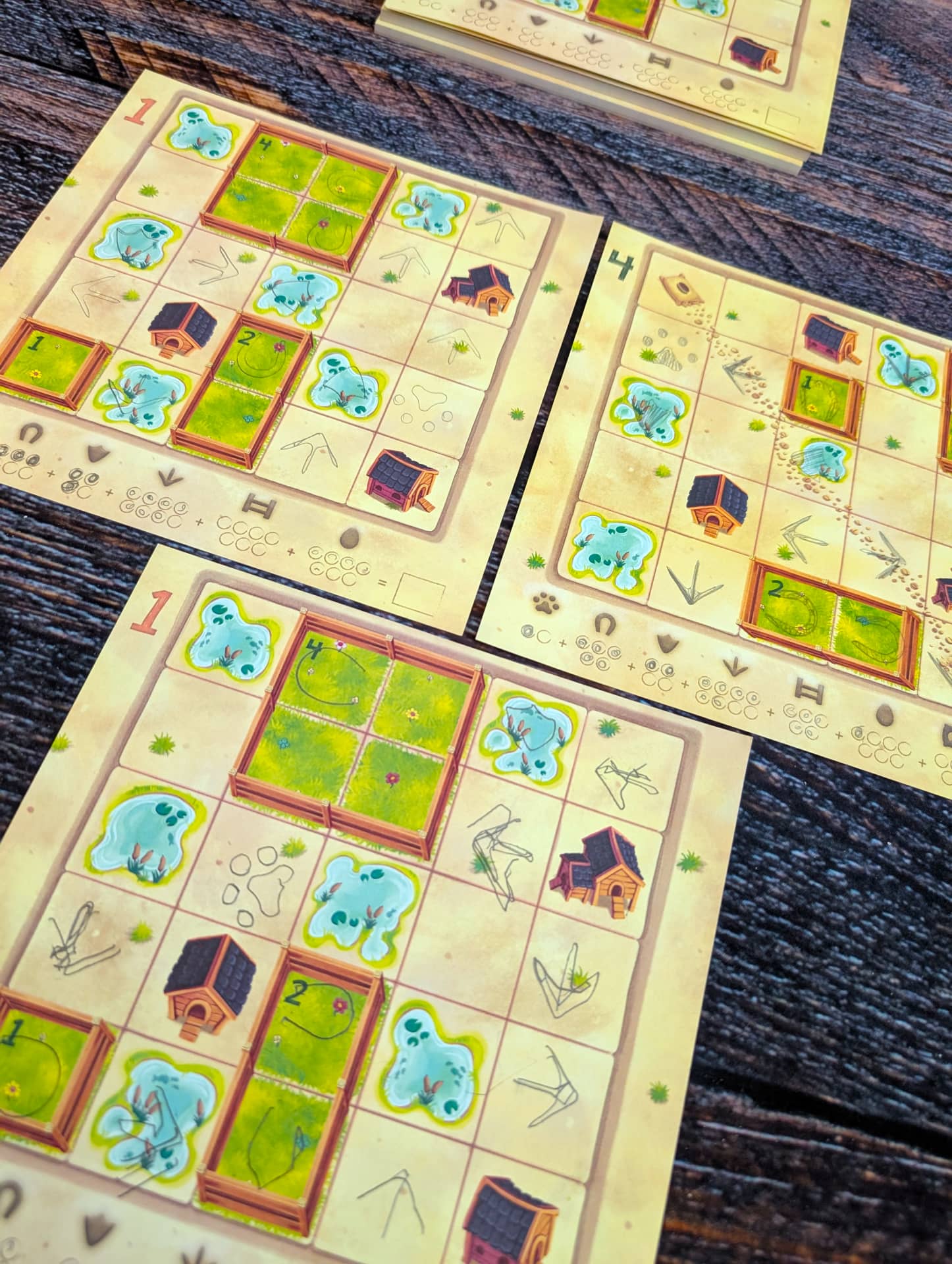 Každou „tetrisovou“ šablonu tak chcete umístit na svůj dvorek tak, abyste udělali radost oběma zvířátkům. Obkreslovat je nemusíte, většinou se vám ale někam hodí alespoň jedno z nich. Na začátku partie to není nic těžkého, dvorek působí prostorně a máte i několik možností, kam zvířátka výhodně obkreslit. Jak se ale přiblíží konec, na dvorku je najednou místa velice málo a občas to může vést k frustraci mladších hráčů, kteří přesně vědí, jak tam něco umístit, ale vyjde na ně šablona, která s jejich plánem nesouzní. I to je však součástí hry, která dětem skvělým způsobem pomáhá rozvíjet prostorovou představivost a předvídání.