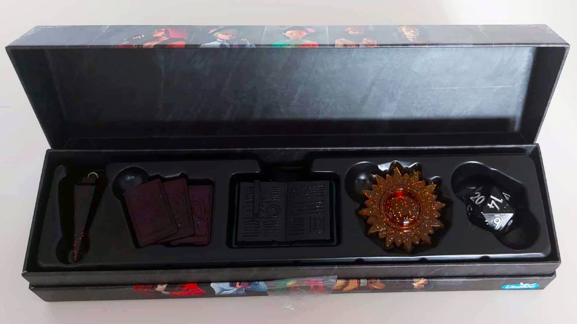Už samotné otevření masivní a nádherně ilustrované krabice je malým rituálem. Její obsah je bohatý a okamžitě vás vtáhne do světa tajemna. Dominantou je bezesporu zástěna pro ducha: masivní kartonová clona, která nejen, že skrývá duchovy tajné informace před zraky médií, ale zároveň slouží jako tematická kulisa celé hry. Z jedné strany ponurý výjev panství, z druhé praktický organizér pro všechny karty. Srdcem a duší celé hry je však obrovská sada karet. 84 karet vizí představuje naprostý klenot. Jedná se o velkoformátové karty s dechberoucími, surreálnými a snovými ilustracemi, které připomínají díla Salvadora Dalího zkřížená s atmosférou filmů Tima Burtona (detailnější popis nemám, moc se omlouvám).