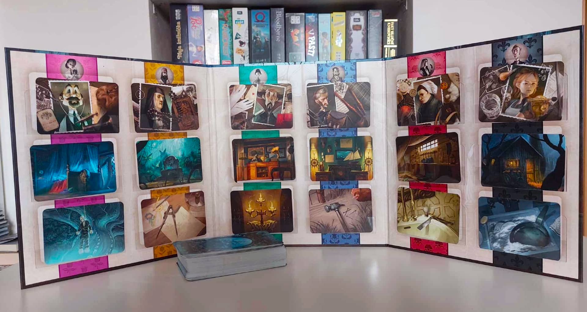 Po vizuální stránce je Mysterium absolutní špičkou a dle mého i jedním z nejkrásnějších produktů v deskoherním světě. Práce umělců je fenomenální. Karty vizí jsou srdcem hry nejen mechanicky, ale i esteticky. Jejich snový, detailní a často mnohoznačný styl je přesně to, co potřebujete, aby něco takového fungovalo. Každé prohlížení karet je malým uměleckým zážitkem. I ostatní komponenty jsou navrženy s citem pro detail a atmosféru, od ponurých portrétů podezřelých až po strašidelné interiéry panství. Vše do sebe zapadá a vytváří pohlcující a konzistentní svět, do kterého je radost se na pár desítek minut ponořit.