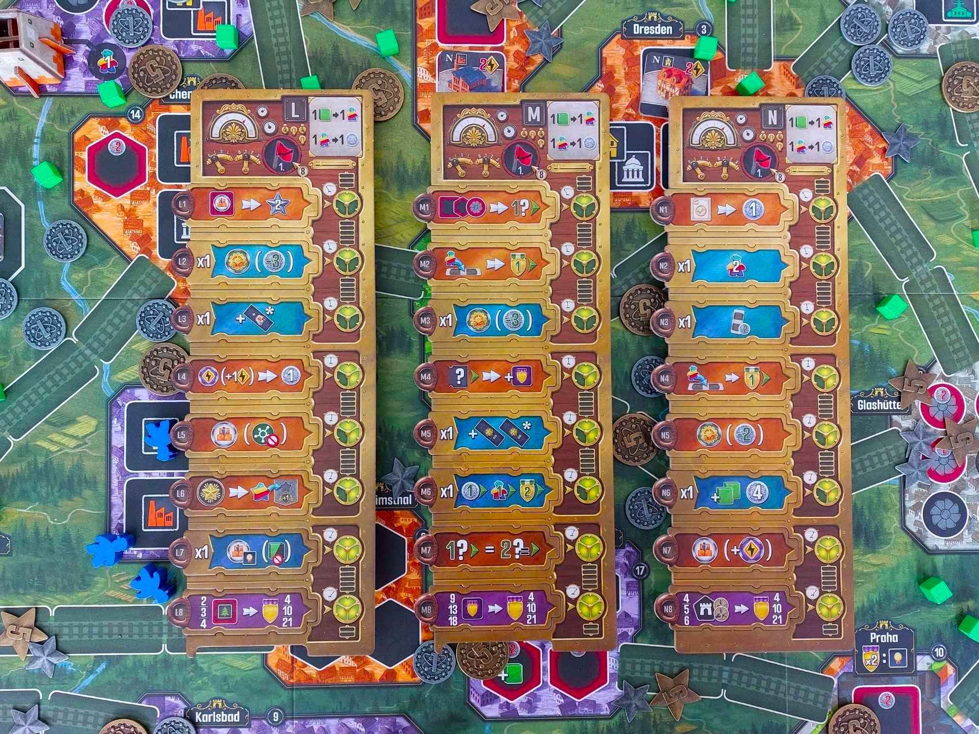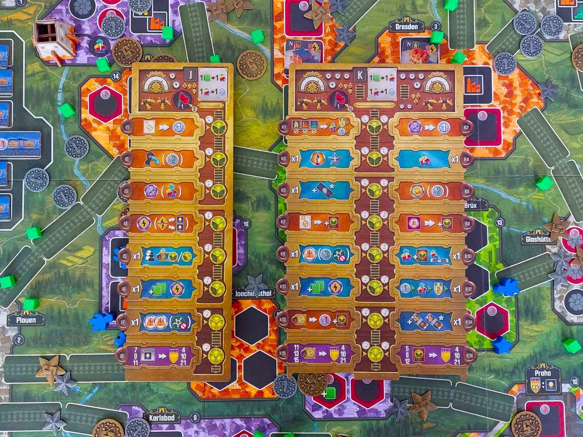 Experimenty jsou příjemně různorodé a některé z nich silně ovlivňují způsob, jakým ke hraní přistupujete. Průmyslová špionka například na plánu místo klasických městských budov rozmisťuje budovy neutrální, které mohou elektrifikovat i ostatní hráči. Navíc je schopná elektrifikovat budovy, které má stále uložené na své hráčské desce.