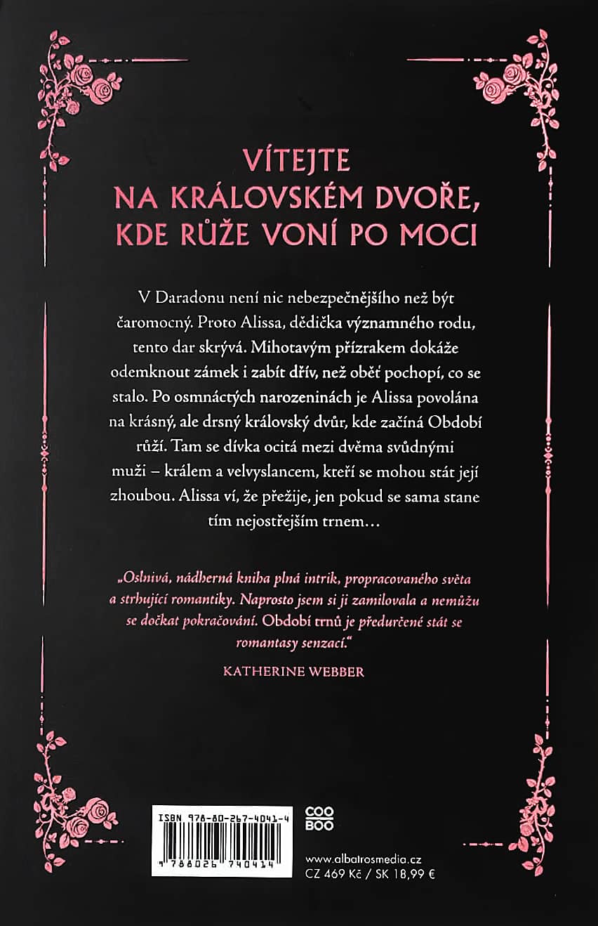 V osmnáctém roce každého dvořana čeká zkouška v podobě šesti týdnů na královském dvoře během Období růží, na jehož konci musí králi složit slib naprosté oddanosti. Dvůr je ovšem plný intrik, přetvářky a lidí, kteří se nebojí jít přes mrtvoly. Alissa ví, že tady nesmí udělat jedinou chybu. Stačí jeden špatný pohled, jedno podezření a její život skončí.
