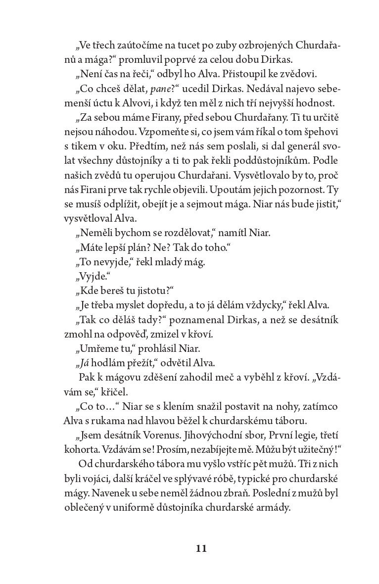 Největším tahounem celého románu je bezpochyby hlavní hrdina Alva Vorenus, velitel výzvědných sil a chlap, který si rozhodně nebere servítky. Je to neuvěřitelný, ukázkový alfa samec v tom nejlepším slova smyslu, jehož moudrost, obratnost a chladná racionalita vás prostě budou bavit. I když je synem samotného velemága, paradoxně nezdědil vůbec žádné magické nadání, a navíc patří mezi pouhé tři přeživší po zpackaném teleportu celé vojenské legie. Právě absence magie ho nutí spoléhat se na vlastní intelekt, bystrý úsudek a schopnost číst mezi řádky ve světě plném lží a přetvářky. Jeho vyšetřování tvoří neochvějnou páteř celé knihy a Vorenus je zkrátka průvodcem, kterého byste v temné uličce stoprocentně chtěli mít po svém boku.