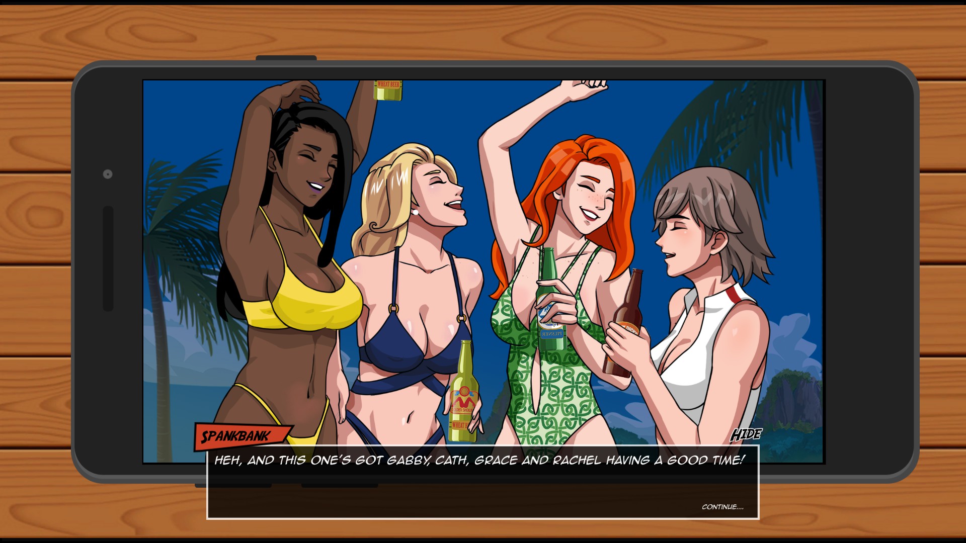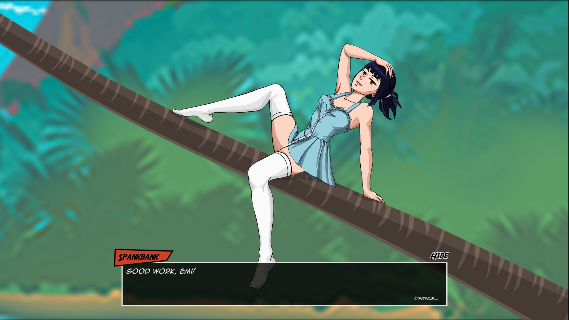 Co hru povyšuje nad průměr, je její emocionální jádro. Všechny charaktery, včetně hlavního hrdiny, u mě nyní rozumně přejmenovaného na Spankbanka, projevují skutečnou empatii a starají se jeden o druhého. Řeší se zde i vážnější témata jako přepracování, problémy se sebevědomím nebo sobeckost v podnikání. Tato péče se přenáší i do erotických scén, které nejsou jen mechanickým aktem, ale obsahují spoustu něžných gest a vzájemného respektu. Příkladem je scéna s postavou Jenn, která se během sexu přizná, že myslí na někoho jiného, a vaše postava ji místo žárlivosti mile podpoří, což působí nečekaně lidsky a autenticky. Nicméně ano, i bizarností je tam dostatek, nemusíte se bát, že byste o něco přišli, včetně křičení jména druhé partnerky, nošení masek a samozřejmě tvorba pornoscénářů, protože to je byznys, v němž chtějí všichni původní trosečníci z nějakého důvodu hrát.