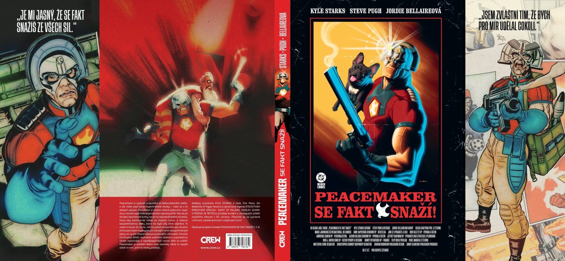 Výstřední název recenze? Možná. Víte, některé komiksové postavy čekají desítky let na svůj moment na výsluní. Peacemaker, antihrdina balancující na hraně fanatického patriotismu, absurdního násilí a nečekané zranitelnosti, je toho zářným příkladem. Nicméně díky seriálu Peacemaker od Jamese Gunna, jehož druhá série nyní skončila, a naprosto famóznímu ztvárnění od Jona Ceny, se tento svým způsobem hňup dere neuvěřitelně kupředu. Scénárista Kyle Starks si tak řekl, spojím se s DC, jejich temnou, brutální a nezávislou sérií Black Label, a dám jim dílo Peacemaker se fakt snaží! Bude plné humoru, krve, násilí, zvířátek a tolika vulgarismů, že i dlaždiči by se do ženského pohlavního orgánu na čtyři končícího na -íči styděli něco takového napsat. A tak mě asi ani nepřekvapuje, že oblíbené Nakladatelství Crew s tímhle dílem do řady Black Label sem muselo přijít.