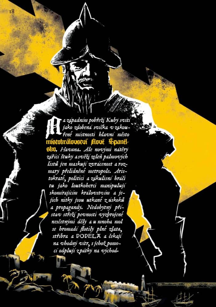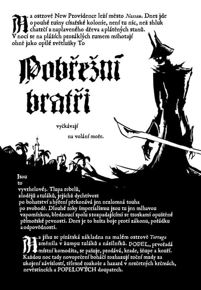 Neočekávejte dechberoucí příběh, který vás vtáhne a nepustí. Hra nestaví na vypracovaném narativu, ale na precizně vybudovaném světě. Ten je temný, depresivní, ale svým způsobem i absurdní. Kniha obsahuje bohaté informace o lokacích, postavách a jednotlivých námořnických frakcích, jež dávají vypravěči skvělý základ pro budování vlastního dobrodružství. Nic není pevně dané; příběh tvoříte vy a vaše představivost, přesněji řečeno vypravěč, který rozhoduje, jakým směrem se vaše družina bude ubírat. Tomu ještě napomáhají rozšíření jako Stříbrné dublony Krvavé Baronky nebo Pohřbeno na Bahamách, které slouží jako bonusové doplňky přinášející nové lokace a potenciální zápletky.