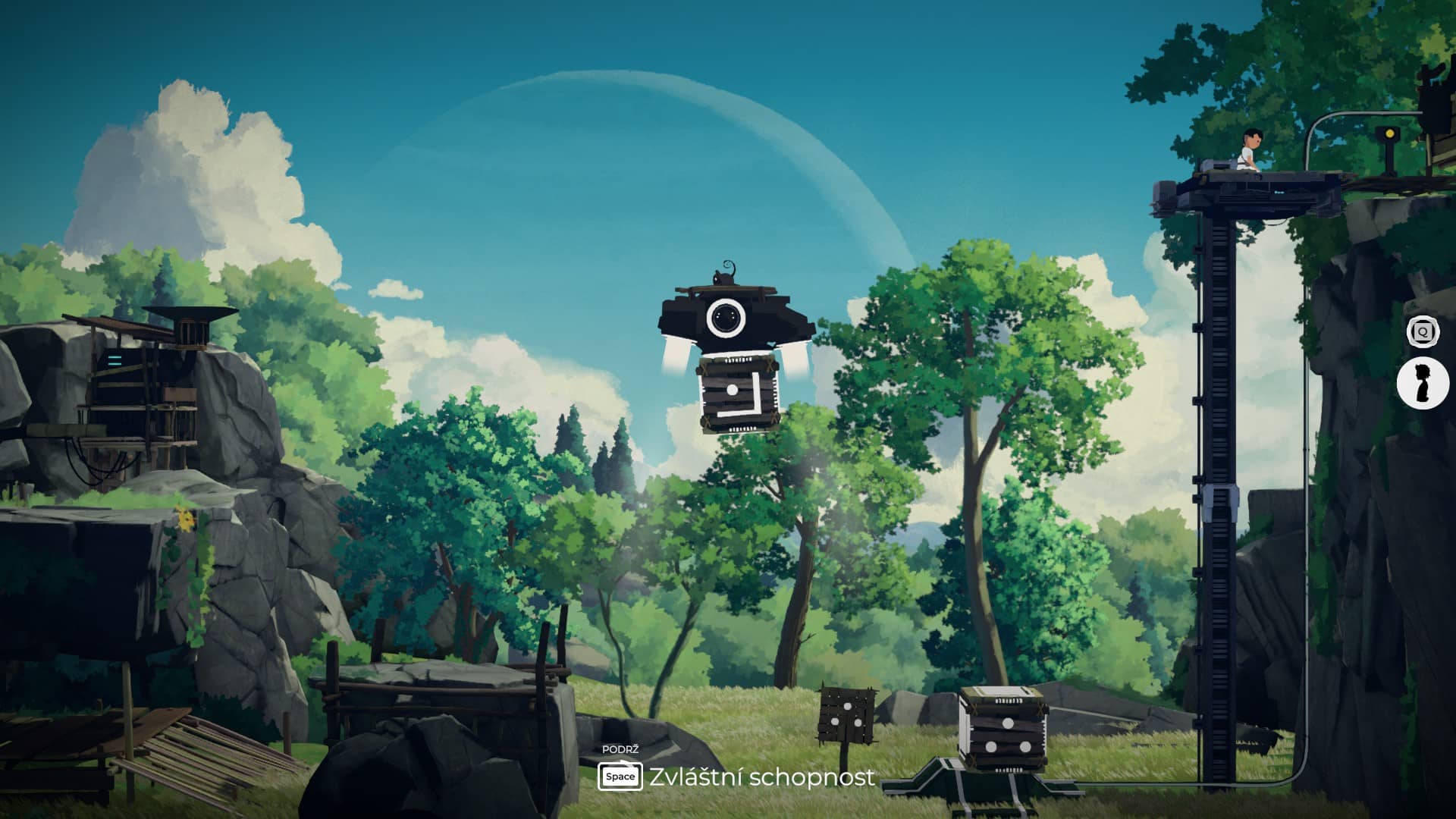 Další slabinou Planet of Lana II je místy krkolomné ovládání. Ačkoliv hra funguje dobře jak na ovladači, tak na klávesnici s myší, některé pasáže vyžadují rychlou kombinaci více akcí najednou. V těchto momentech se ovládání stává méně intuitivním a může vést k opakovaným chybám. Nepříjemný problém ale představuje umělá inteligence ovládající Muiho. Přestože máte nad jeho pohybem určitou kontrolu a můžete ho nasměrovat na konkrétní místo, v některých situacích se chová nepředvídatelně. Někdy ignoruje příkazy, jindy se vydá kousek opačným směrem, než by měl. To může být obzvlášť frustrující v pasážích, kde na přesnosti záleží… a že jich není zrovna málo. Nejednou se mi stalo, že Mui místo do bezpečí naběhl přímo do zorného pole hlídkovacích dronů, což vedlo k opakování celých sekvencí. Checkpointy sice existují, ale ne vždy se na ně dá spolehnout.