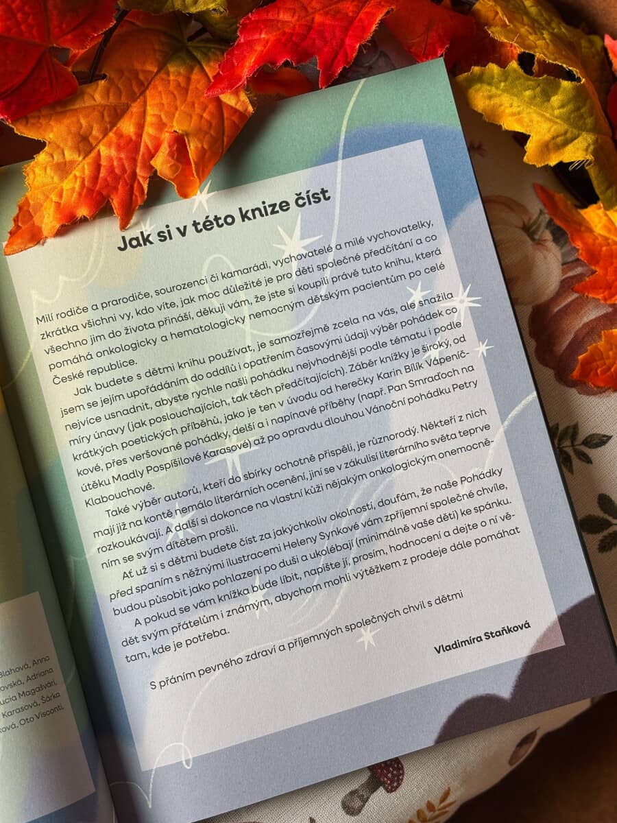 Pohádky před spaním jsou kouzelně ilustrovanou knihou od více než třiceti českých autorů, kteří do pokojů vašich dětí přinesou mnoho nových příběhů. Některé jsou kraťoučké, jiné dlouhé. Některé se stanou oblíbenci vás i capartů, poučí je, pomohou jim zpracovat ten velký svět kolem sebe a jiné… jim přečtete jen jednou, a příště je již přeskočíte. I to však k objevování nových knižních světů patří a jako celek si tak Pohádky před spaním doporučení zaslouží.