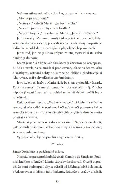 „Mají pro nás i jiná jména, samozřejmě,“ pokračuje. „Pán noci. Krvesaj. Zrůda. Upír. Ale to jsou všechno slova stvořená jazykem smrtelníků. Nedokonalá, neúplná. Chybí jim poezie, brutalita, ladnost. Ne,“ dořekne. „Jsme růže.“