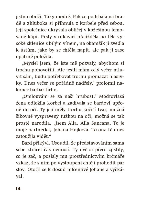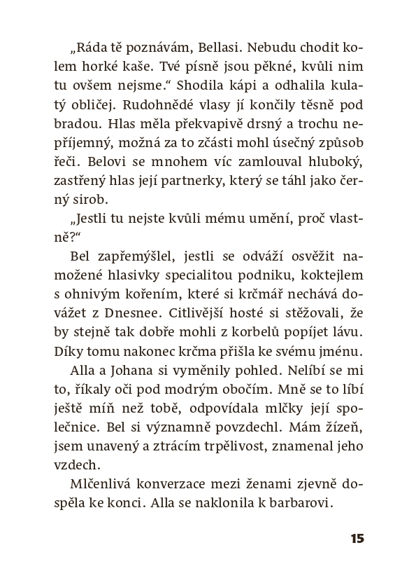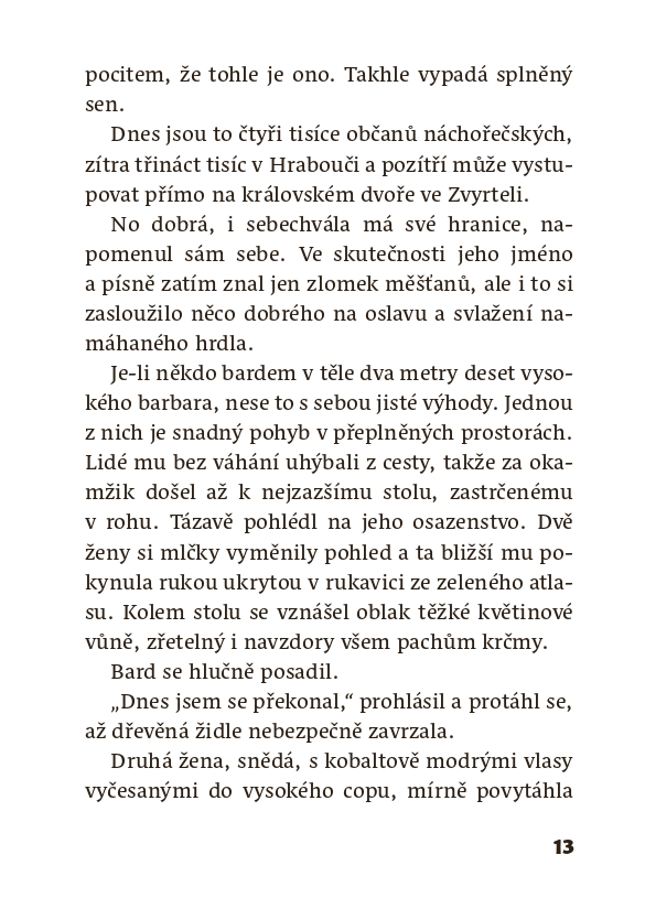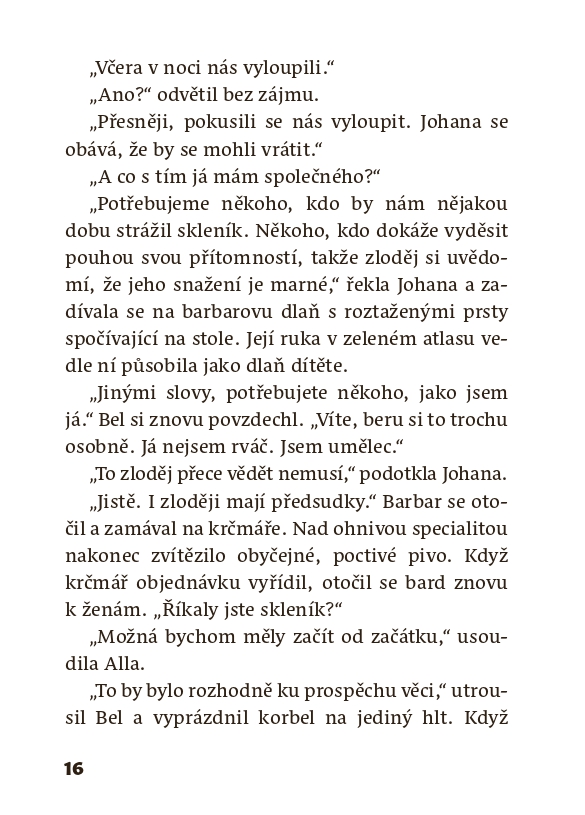 Ústřední dvojice Bel a Ef, kterou už známe z knihy Případ mrtvého čaroděje, je tady mnohem jistější v kramflecích a chemie mezi nimi funguje na jedničku, ostatně jsou to barbartři. Jasně, nejsou to profesionálové, vyřešili ve své vsi jediný případ v Mizerné Lhotě, vraždu, kde jim pomáhala víceméně náhoda, než cokoliv jiného. Tady už normálně jedou, jako zkušení frajeři a mně se to moc, ale moc líbí.