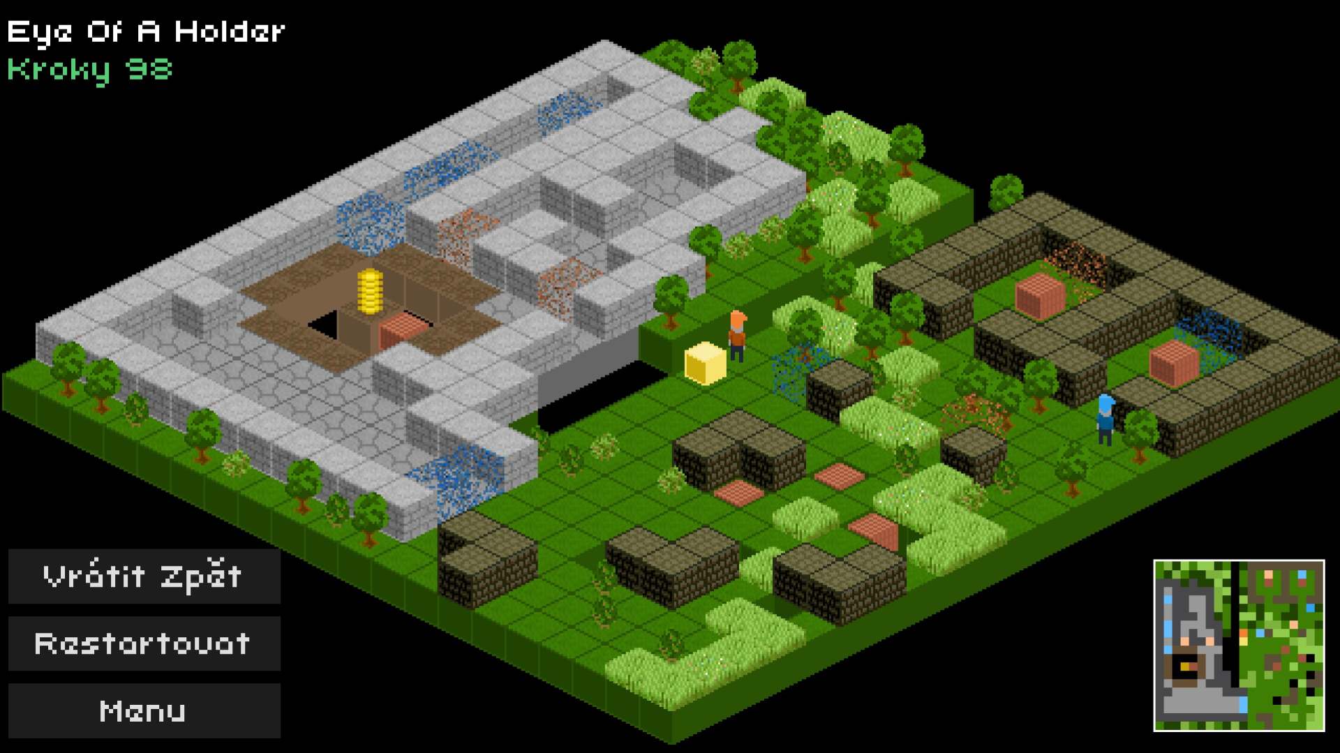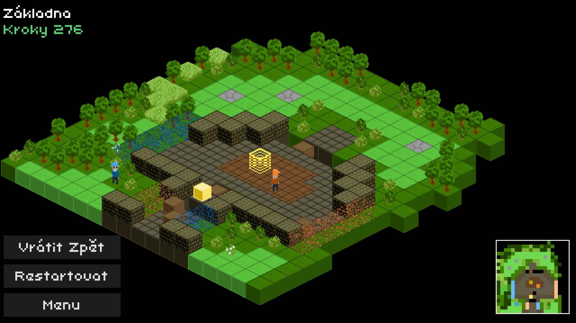 Bratrům Záhorovým se naštěstí podařilo Pushmanii navrhnout tak, aby byla opravdu dobře hratelná, i když jste na ni sami. Paradoxně jsem si ale nedokázal zvyknout na základní ovládání postaviček. Na herní plán nahlížíte z fixní izometrické perspektivy, což může být matoucí, takže jsem si mnohokrát omylem zatlačil objekt někam do rohu, odkud ho pak již nešlo dostat. Hra vám dovolí se v každém levelu vrátit jen jedenkrát o krok zpět a není ideální si tuto záchrannou možnost vyplýtvat pouhou neopatrností.