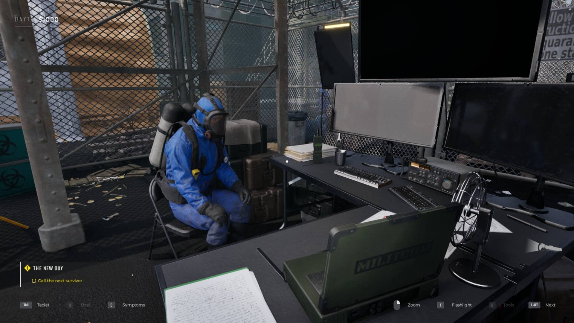 V první řadě prohlížíte nově příchozí přeživší. Muž cynického humoru a vědeckého přístupu k apokalypse, Georgie, vám vysvětlí základy. Následně bude rozšiřovat váš repertoár předmětů a technik, kterými budete ověřovat stav lidí před vámi. Máte svůj seznam symptomů, do kterého musíte odkliknutím jednotlivých bodů zaznamenat vaše poznatky. Lidé přicházejí různí – někdy jsou jen hrozně špinaví, jindy už na první pohled vidíte, že jim nemůžete pomoct. Hra vám to ale nebude dělat jednoduché – i na základě jednoho symptomu někdy budete muset přeživšího poslat… ehm, na onen svět?