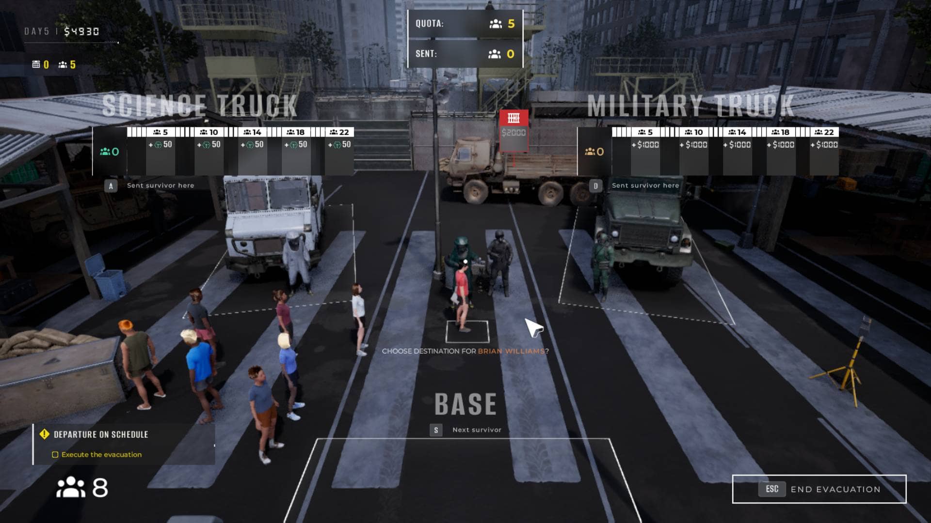 Jasně, když jsou infikovaní, rozhodně je nepošlete zpátky do oběhu. Ale když jsou zdraví, stanou se součástí byrokratického systému kvót. Ano, i to je náplň vaší práce, navíc dost podstatná. Jednou za pár dní všechny vaše přeživší rozdělíte při evakuaci tábora do jednotek. Buď k vědcům, za to jsou zkušenostní body, nebo k vojákům, za to jsou peníze. Takže vlastně… právě ti, kteří prohlídkou prošli, se pravděpodobně vrátí zpátky na frontu. Akorát teda nevím, na základě čeho se máte rozhodovat. Možná prostě podle toho, co zrovna potřebujete, nebo jak to cítíte ve svém nezúčastněném mozku. Podstatné je, abyste splnili kvóty, nebo si těch pár dnů mezi evakuačními konvoji střihnete znovu.