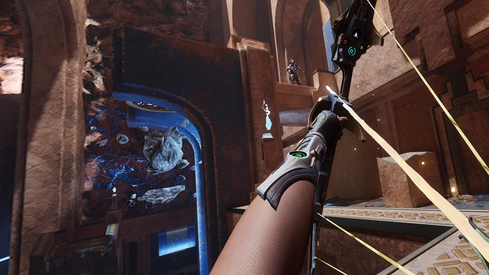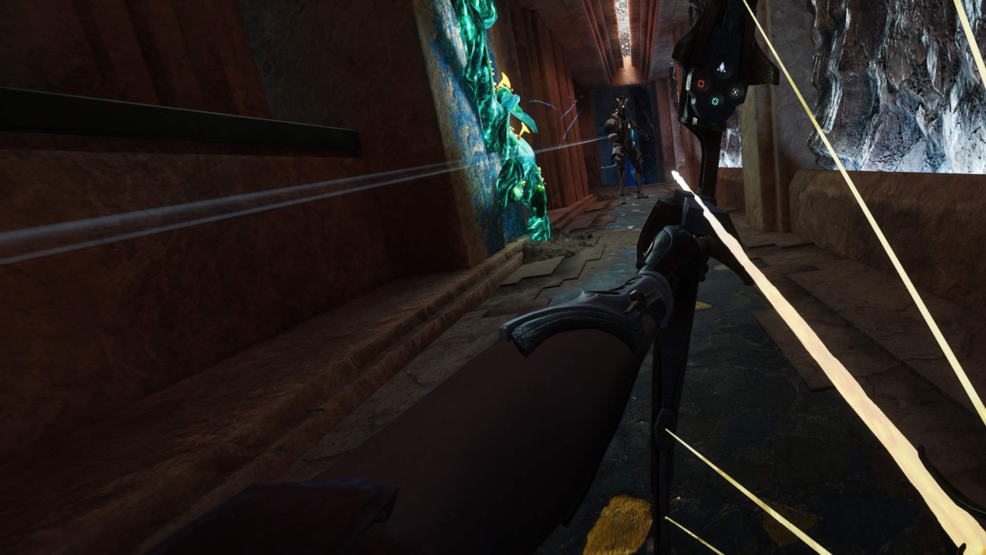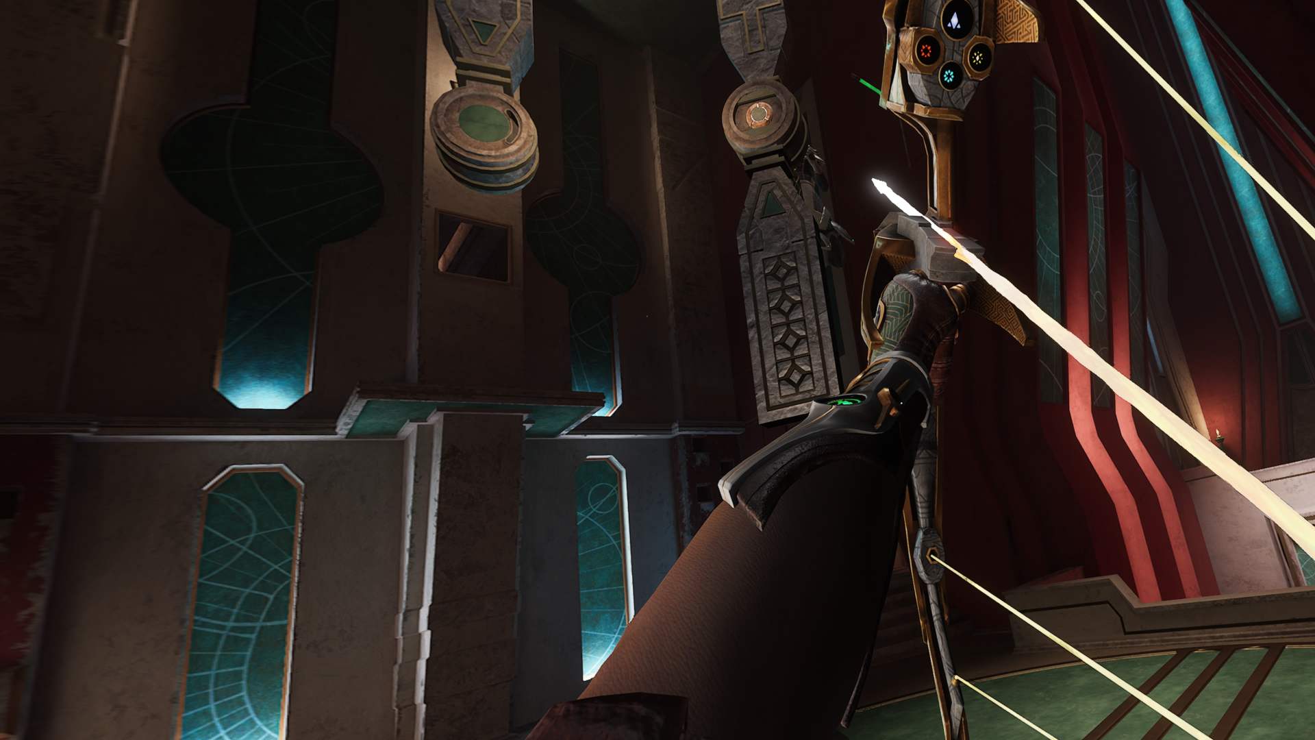 Naopak energetické šípy se ve vašem retrofuturistickém luku – hlavní zbrani, kterou máte k dispozici – objevují automaticky a nemusíte je tam vkládat. Díky tomu jste v boji pohotovější a bojujete opravdu s nepřáteli, nikoli s ovládáním. Každý veterán VR her si jistě vybavuje situace, kdy se mu uprostřed soubojů nepovedlo šíp či třeba zásobník na palné zbrani naprázdno „nahmatat“. To se v Reach prostě nestane.
